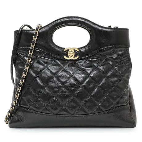 Chanel Black Shiny Crumpled Calfskin Quilted Mini 31 Shopping Bag