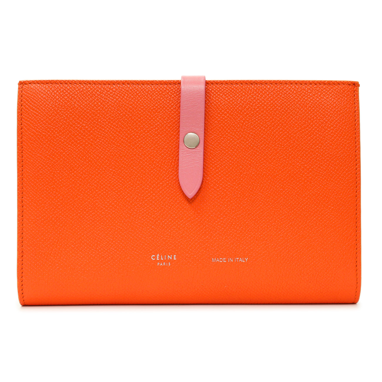 Celine Orange Grained Calfskin Large Multifunction Strap Wallet