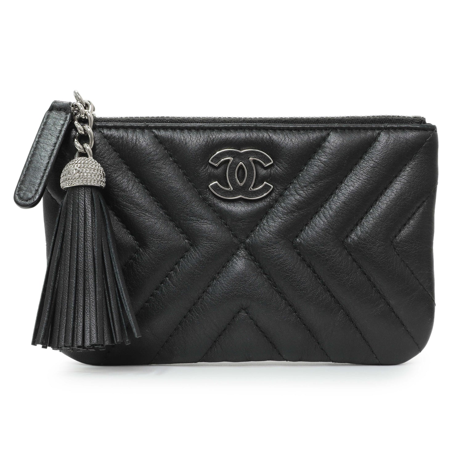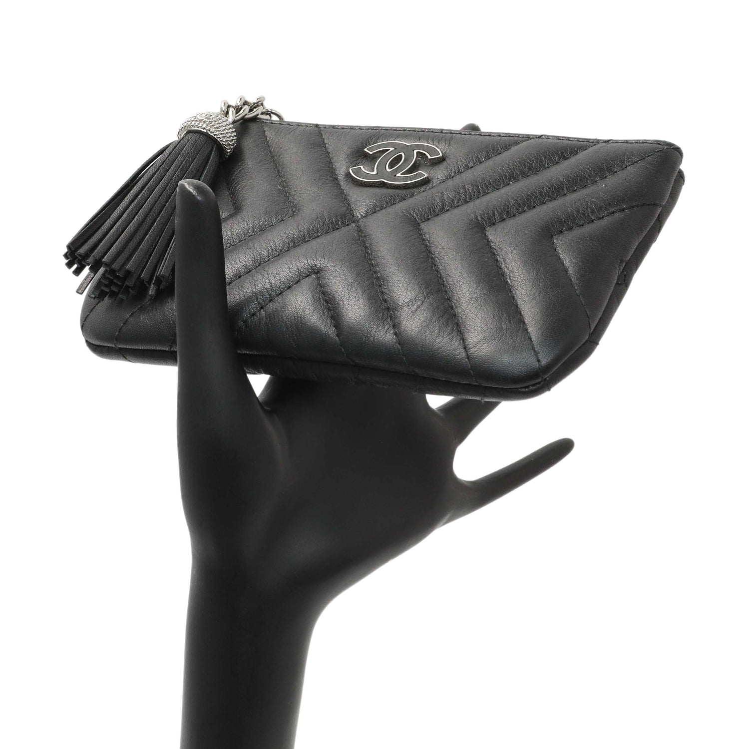 Chanel Black Calfskin Tassel Small Cosmetic Pouch
