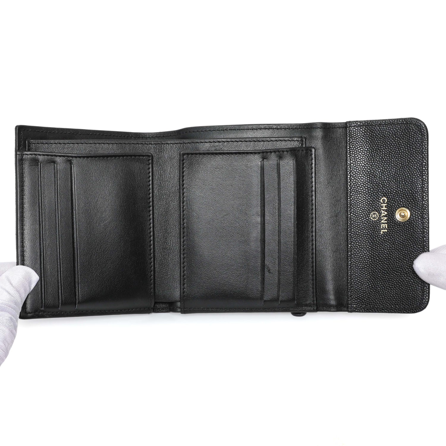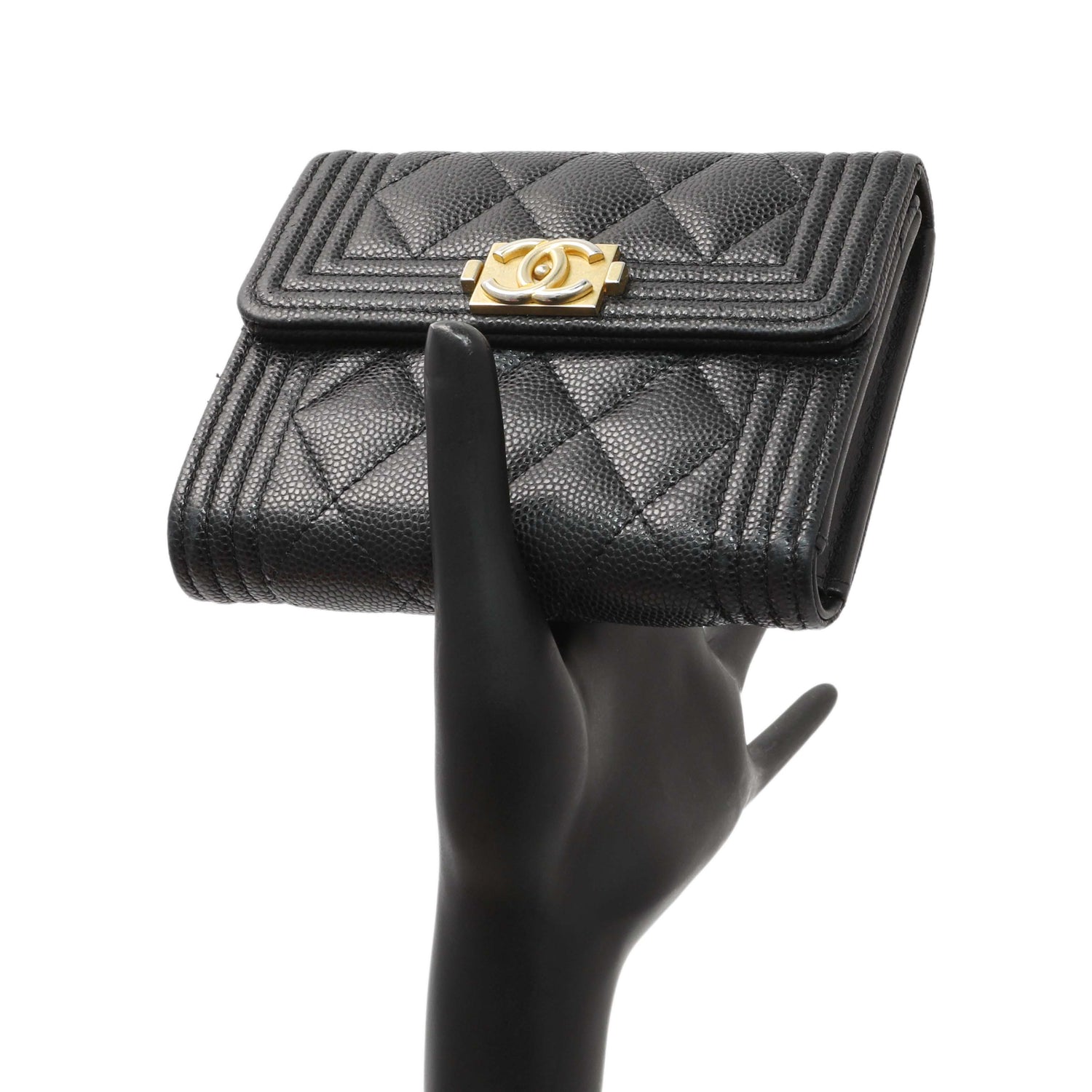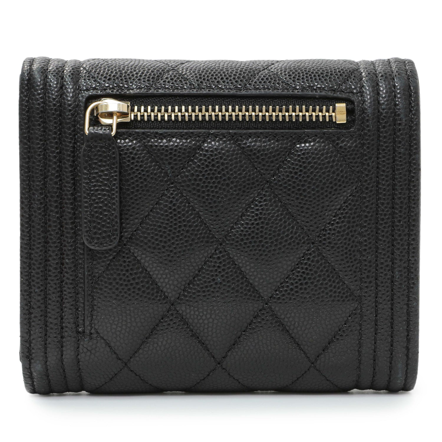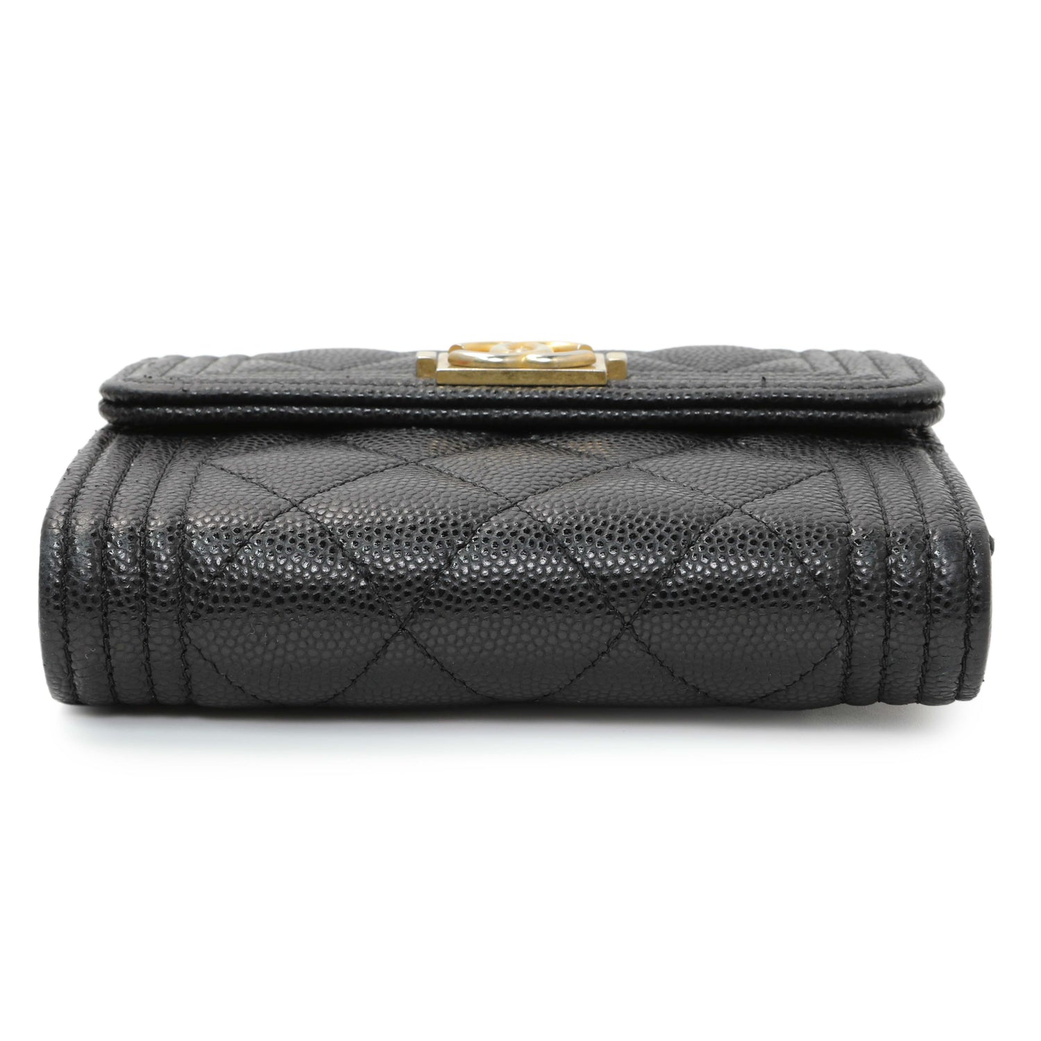 Chanel Black Caviar Quilted Compact Boy Wallet