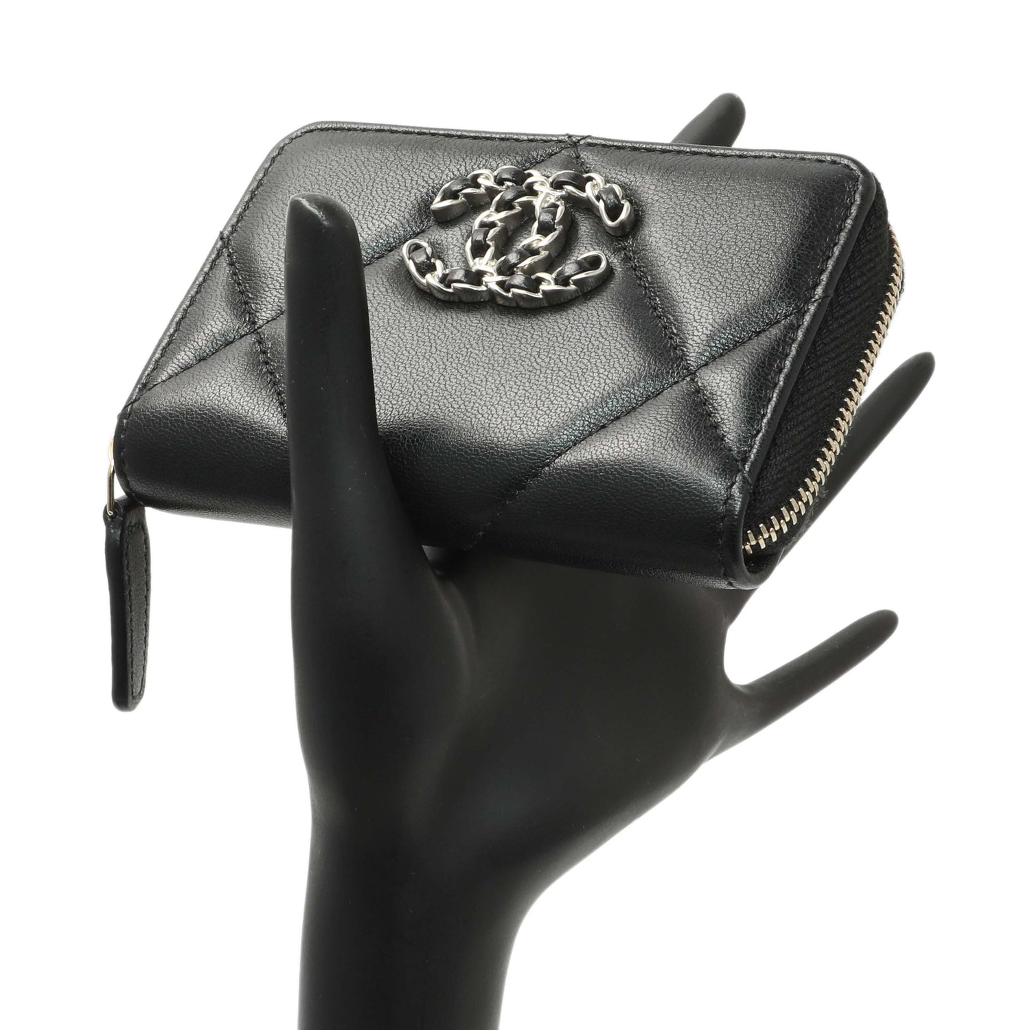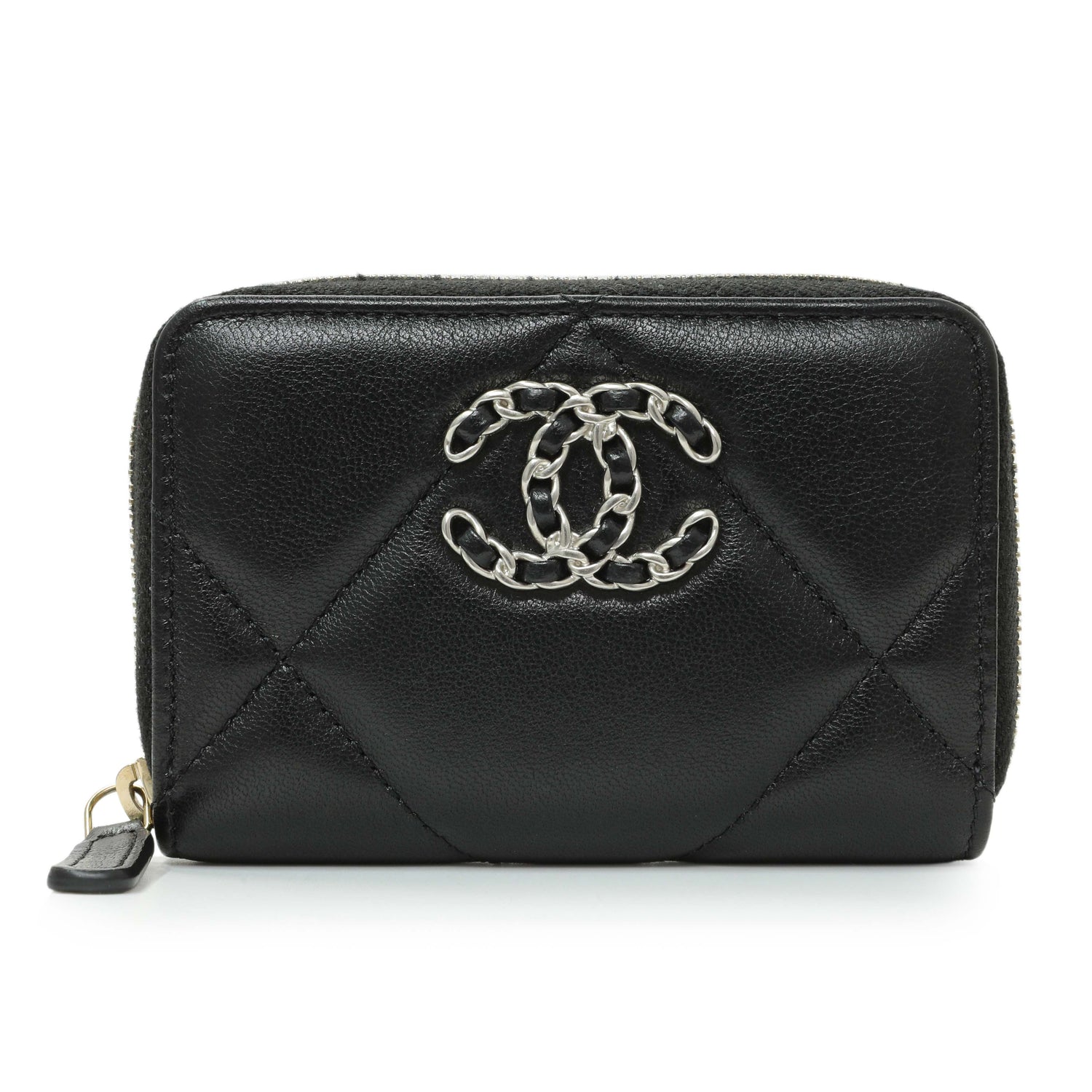 Chanel Black Quilted Lambskin Zip Around 19 Coin Purse