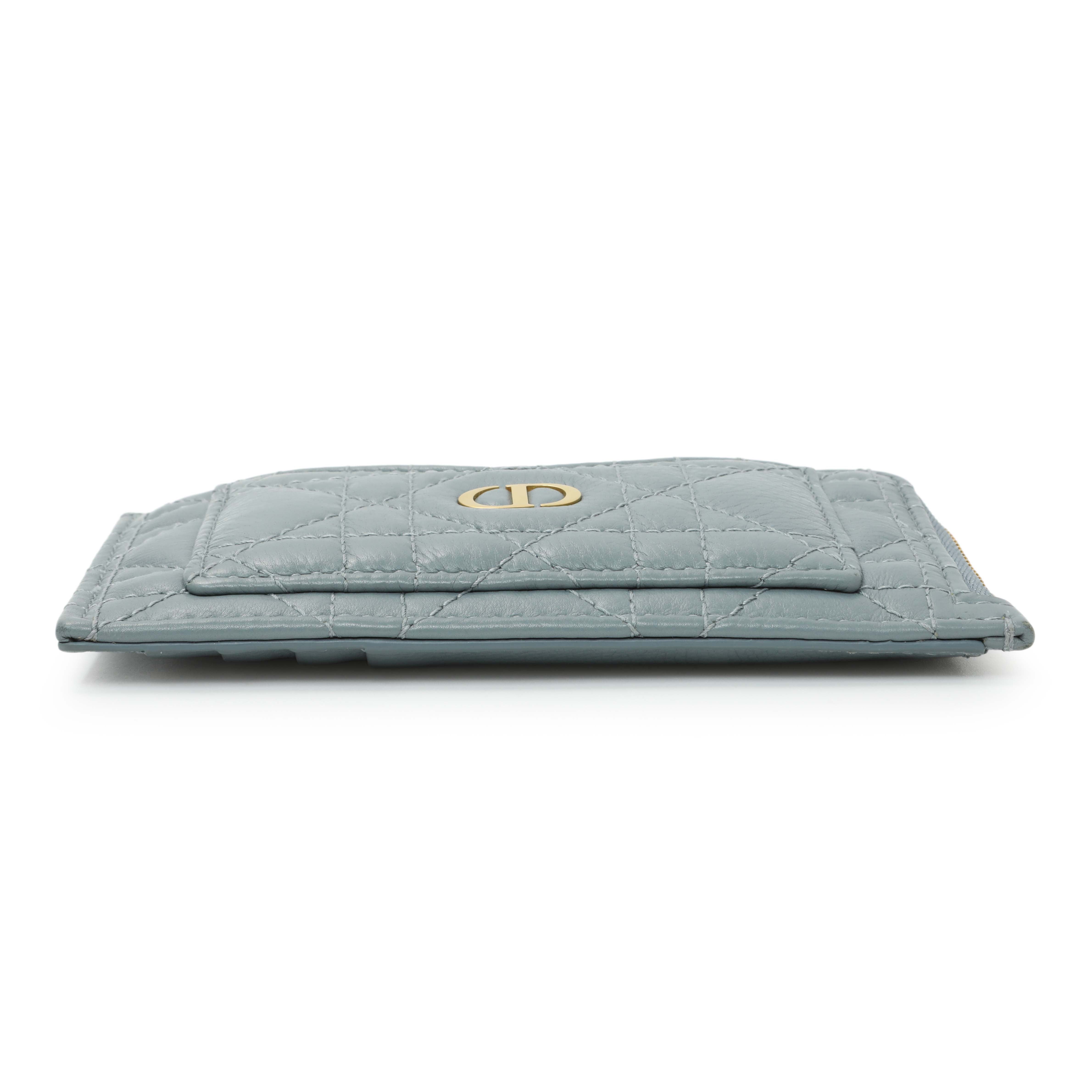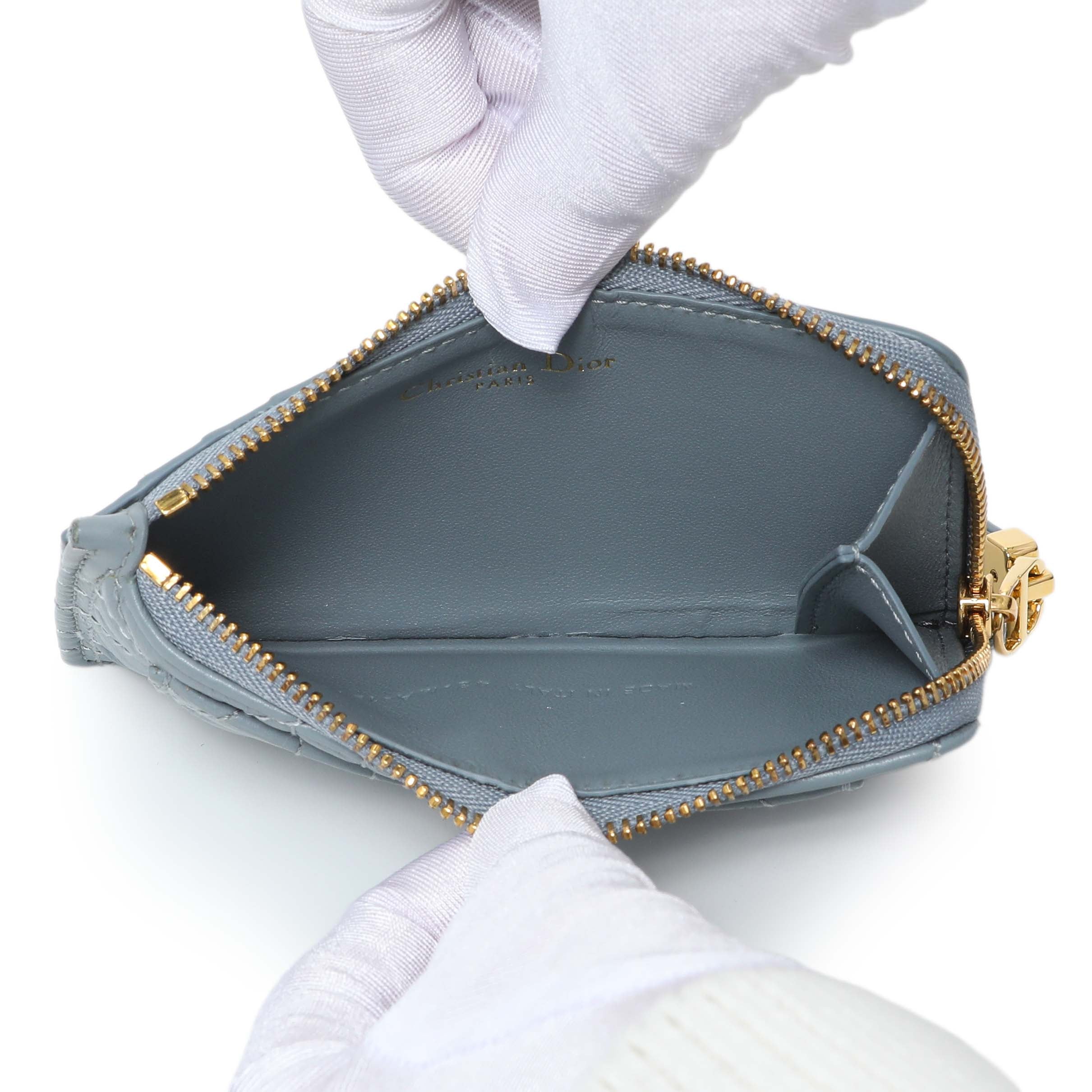 Christian Dior Blue Supple Calfskin Cannage Caro Cosmos Zipped Card Holder