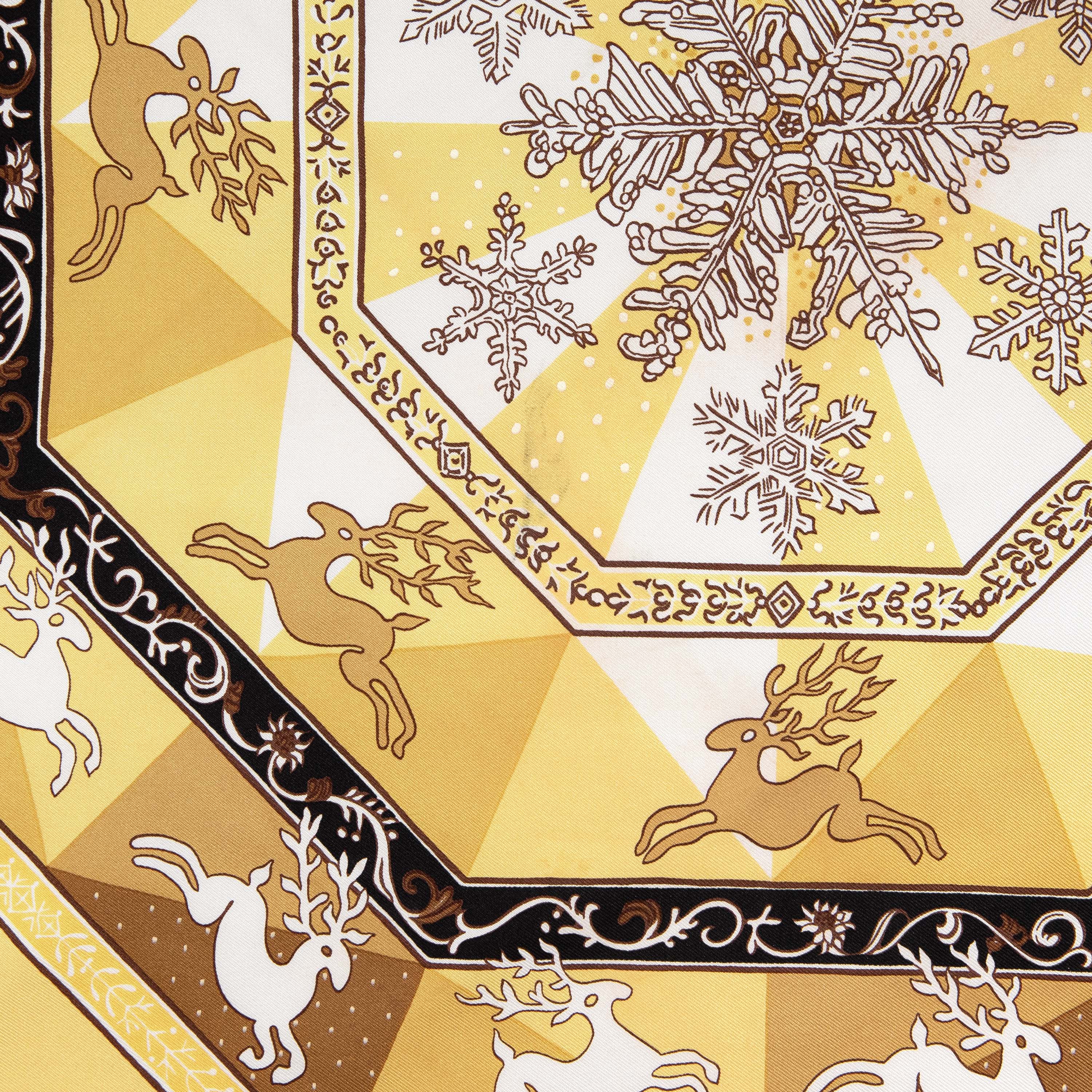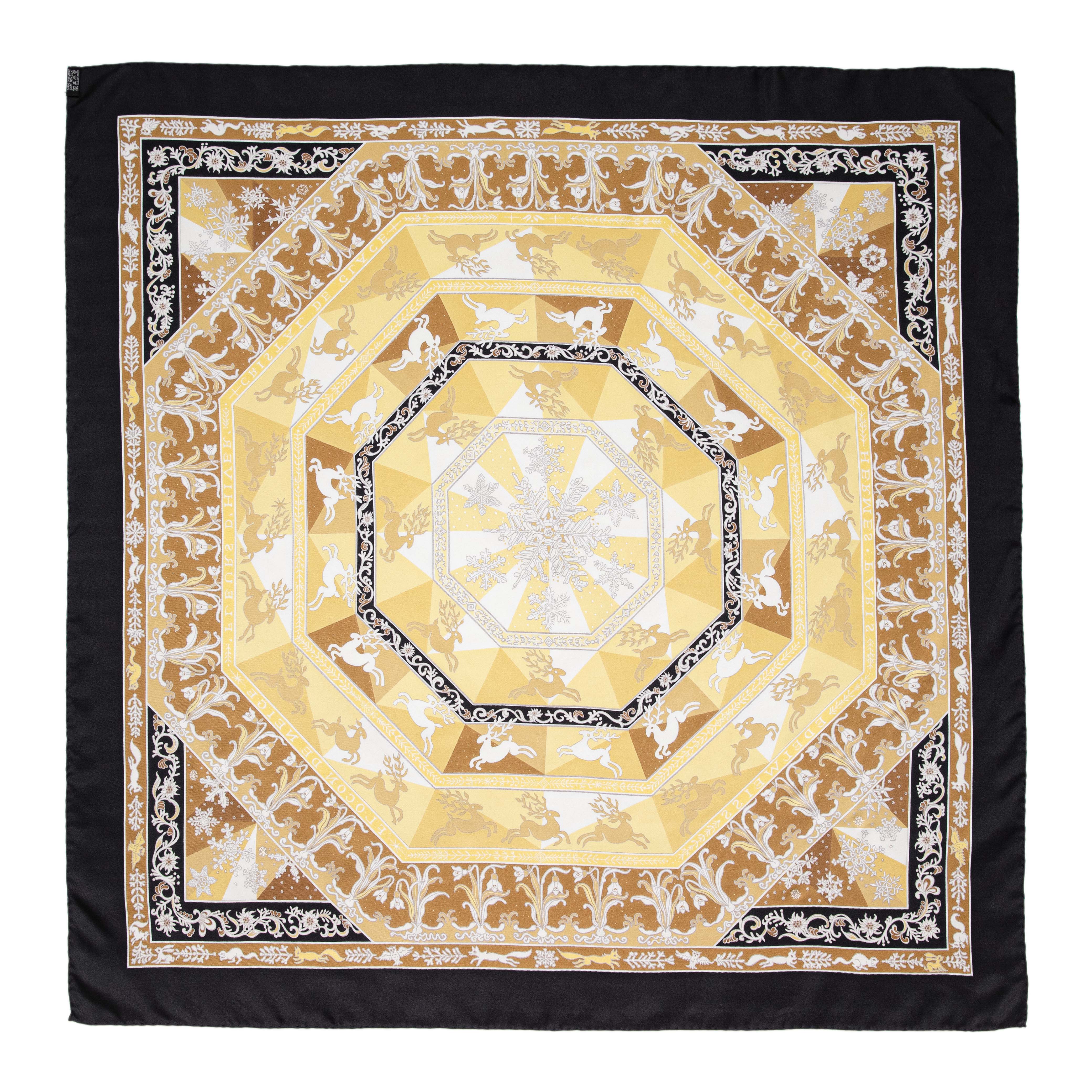 Hermes Noir Jaune Or Silk Fleurs D'Hiver Scarf 90