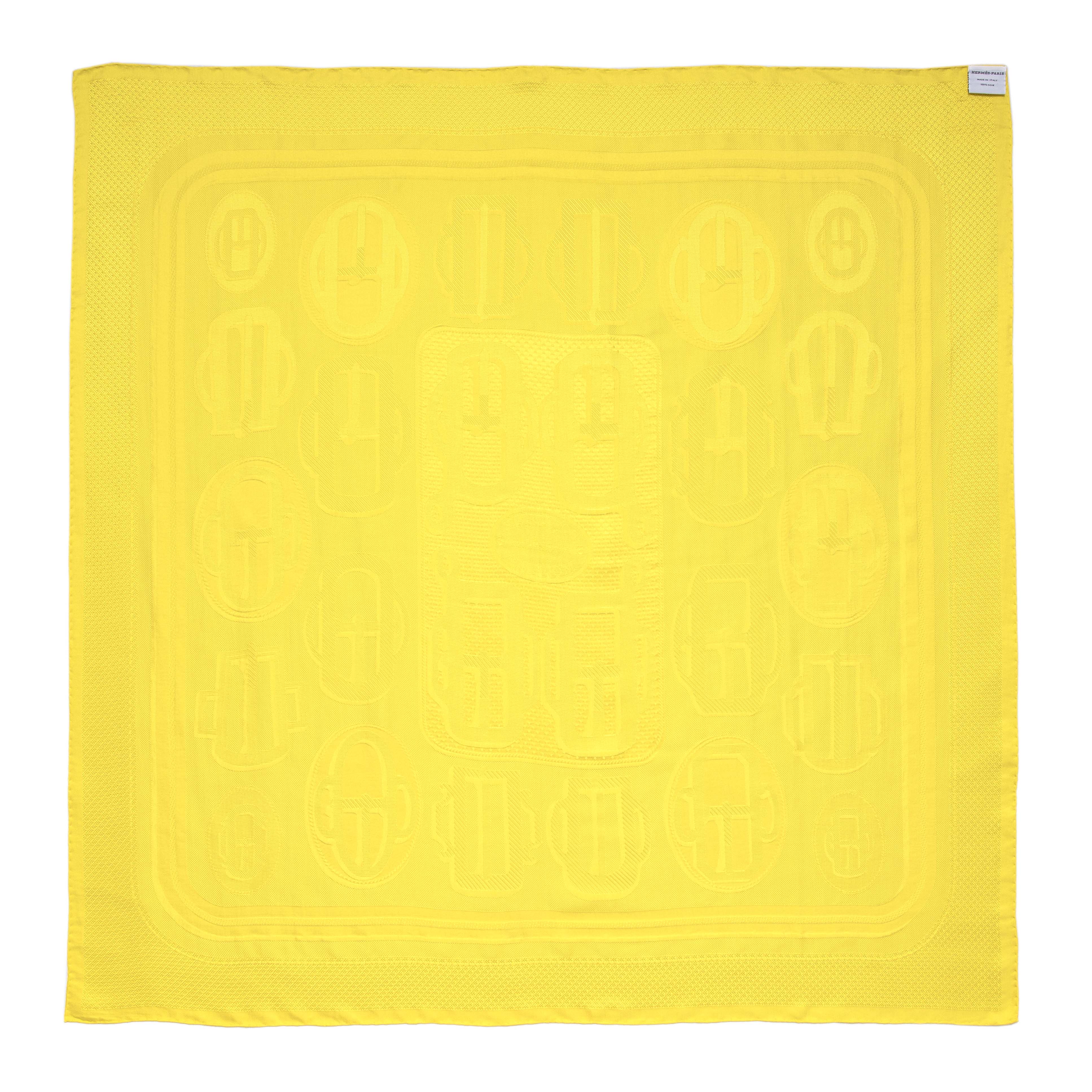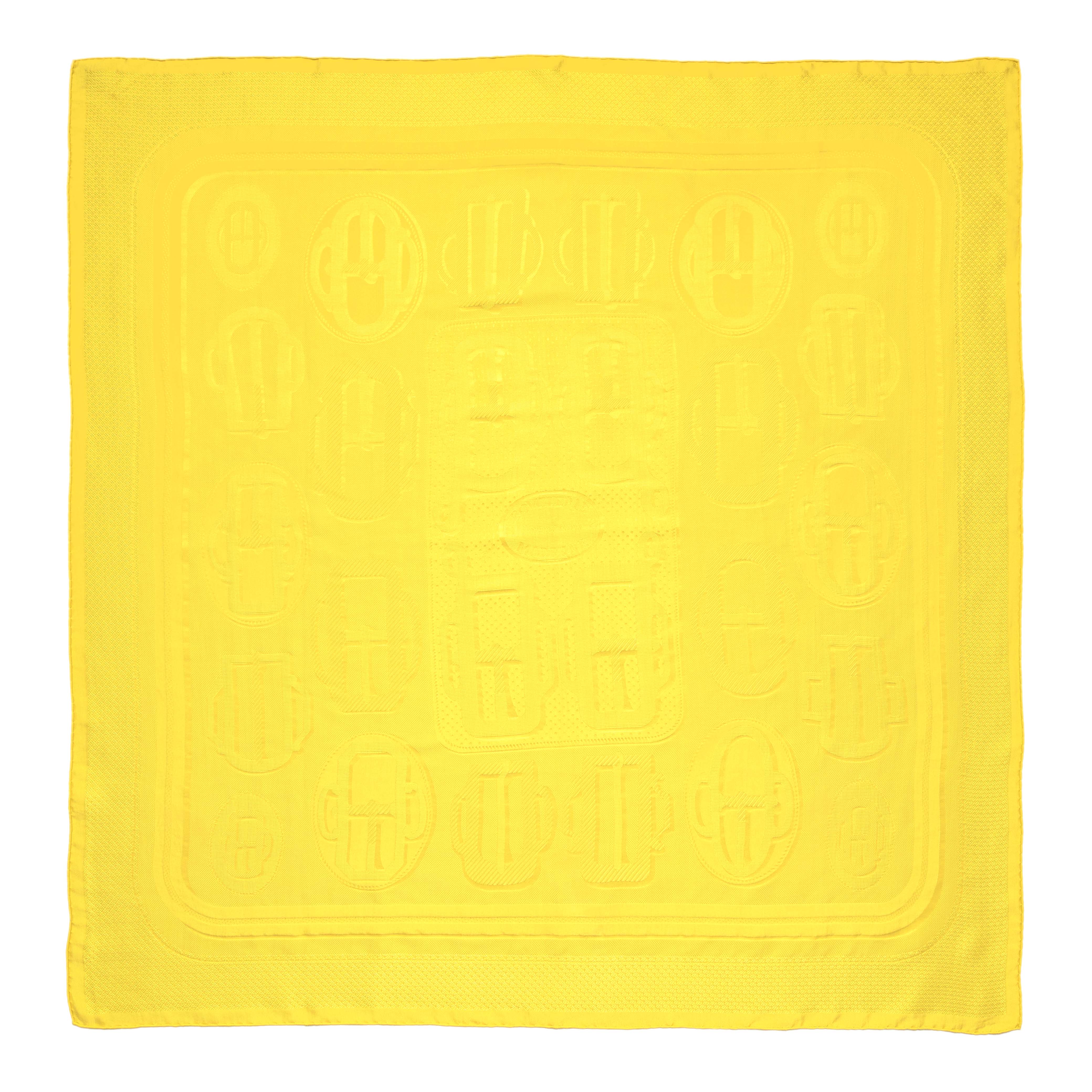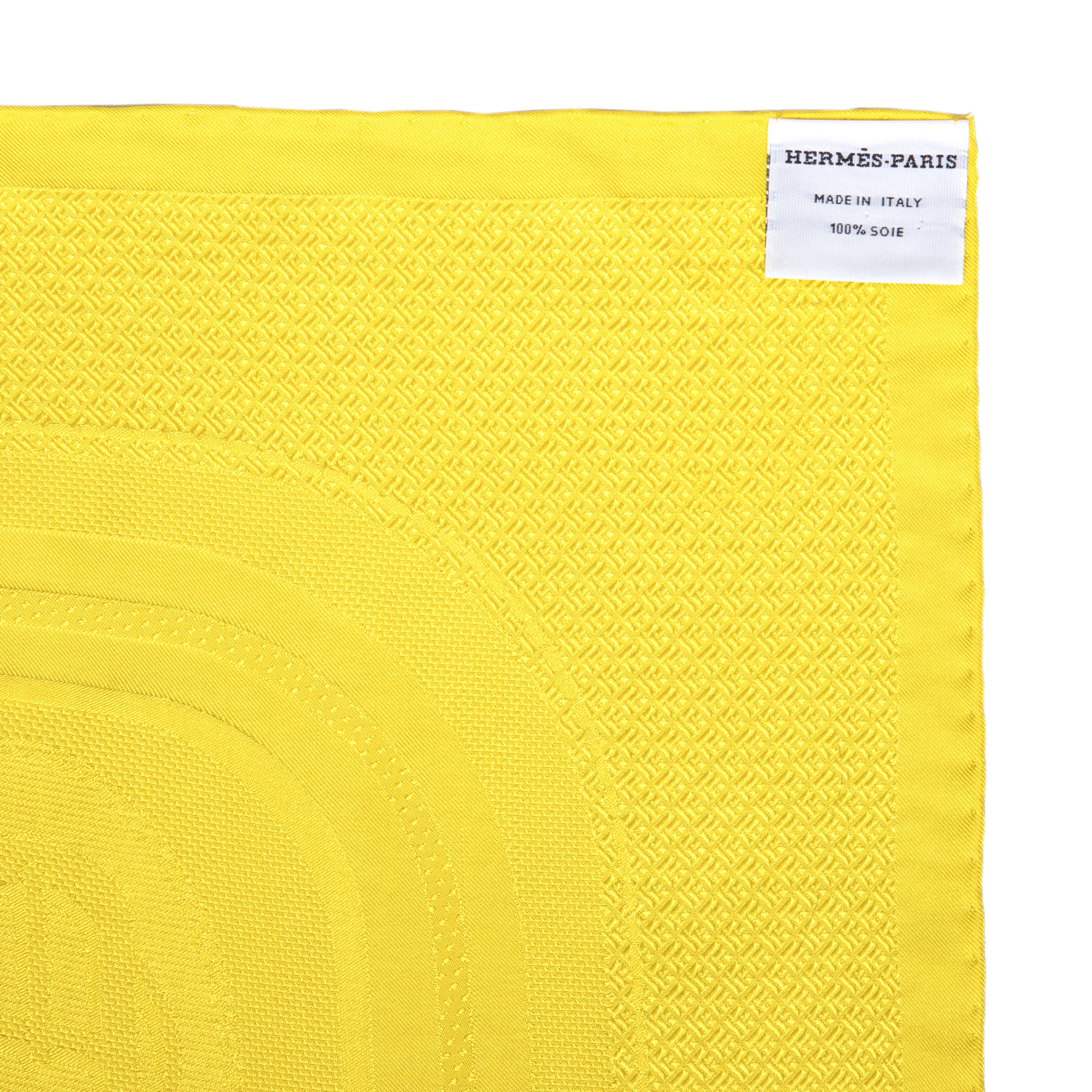 Hermes Yellow Silk Bouclerie Moderne Scarf 90
