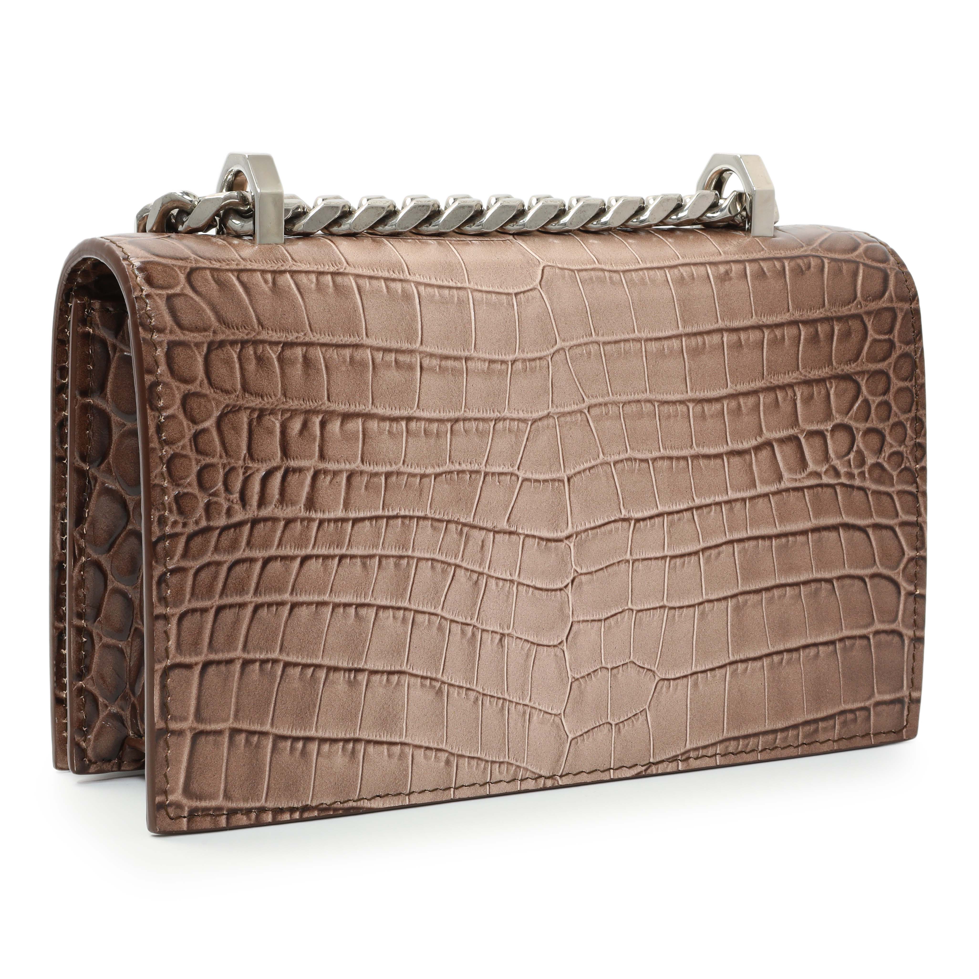 Alexander McQueen Crocodile Embossed Jeweled Satchel