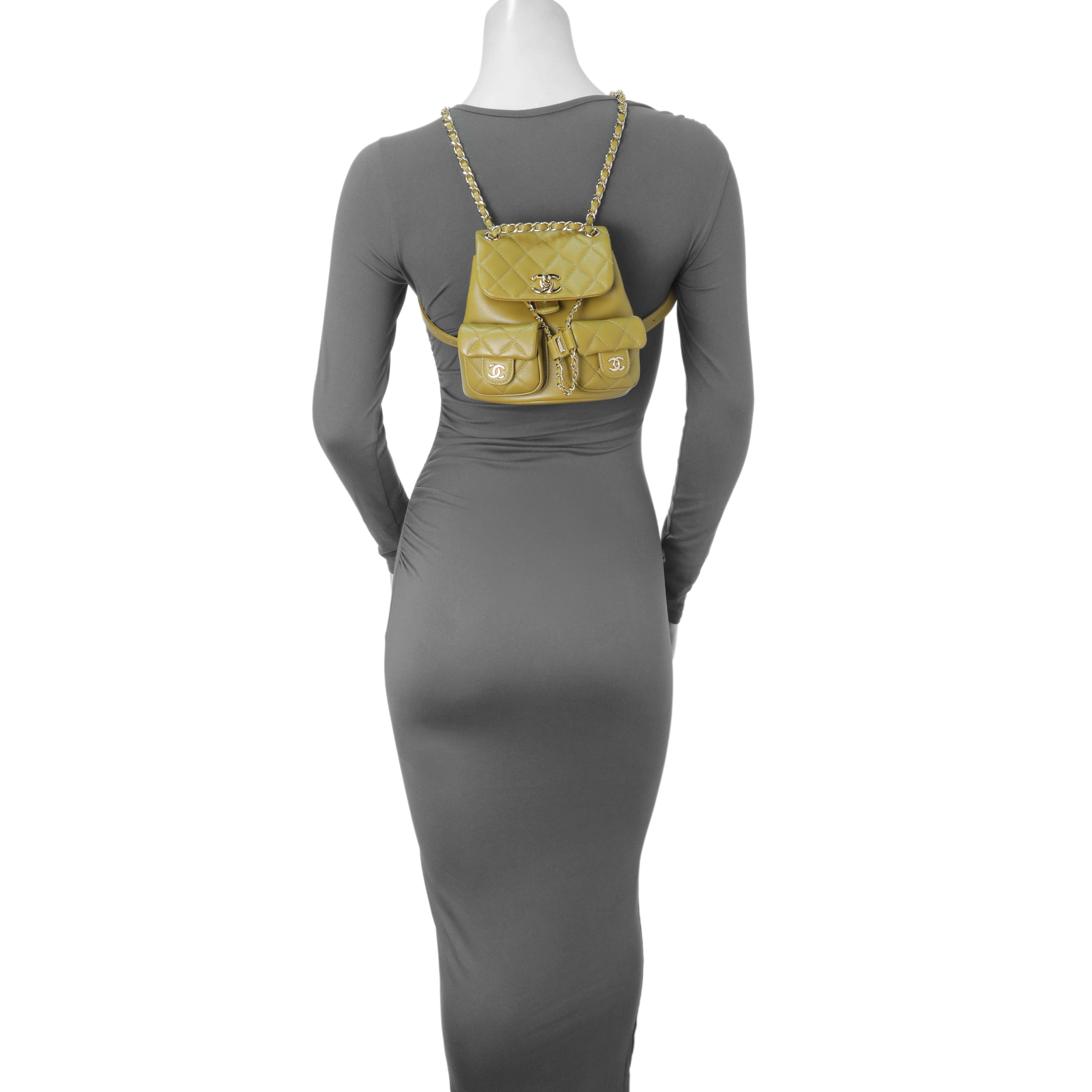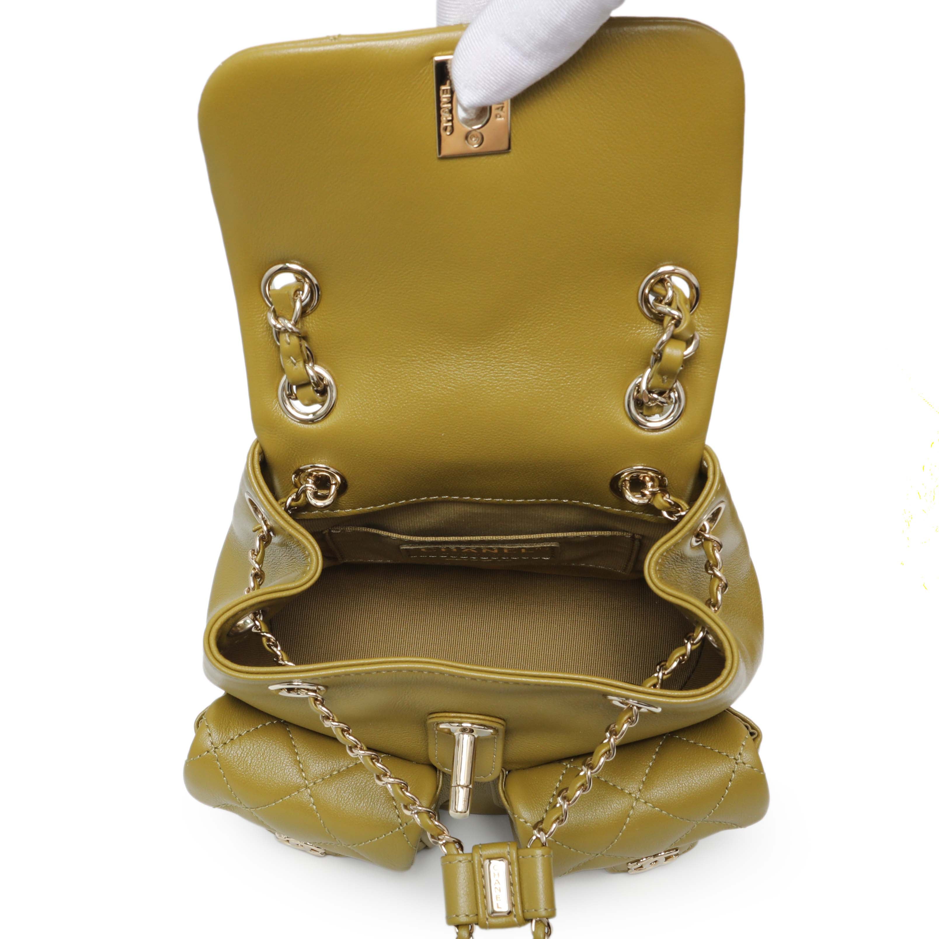 Chanel Olive Green Quilted Lambskin Small Duma Pockets Drawstring Backpack