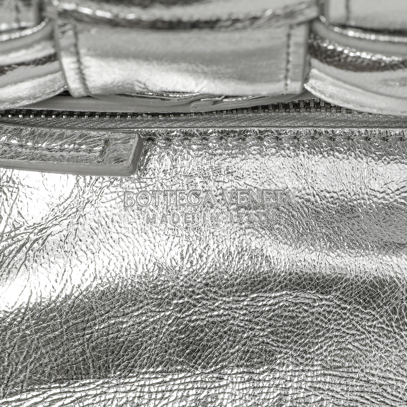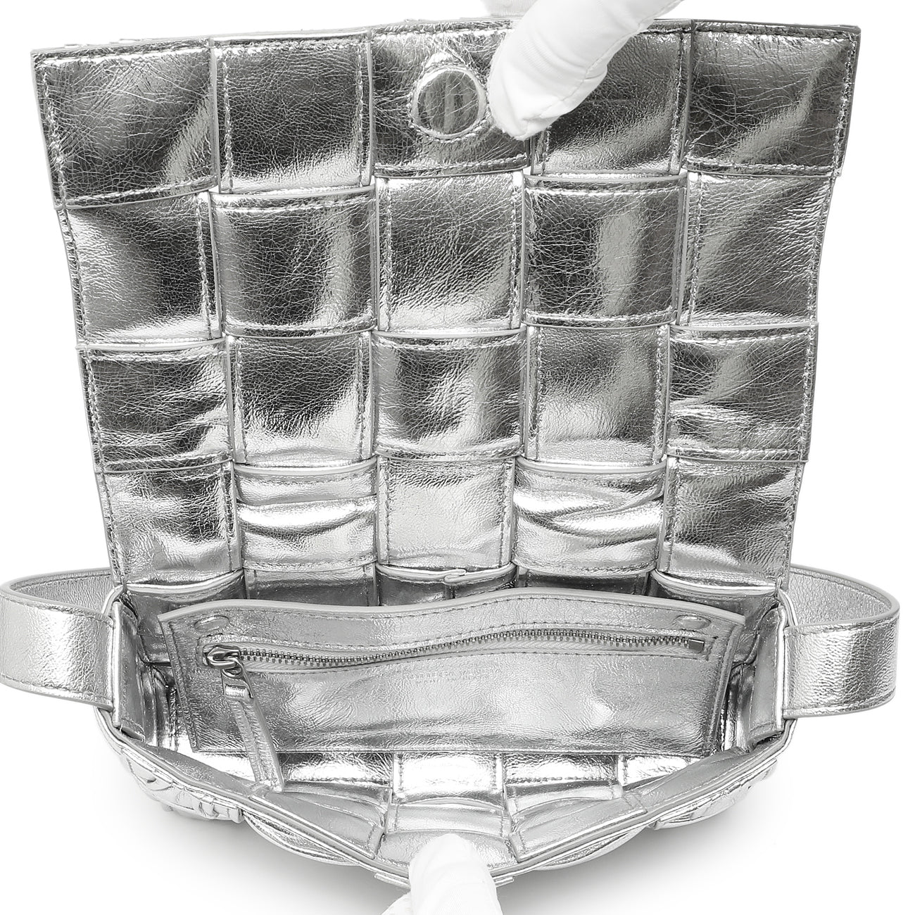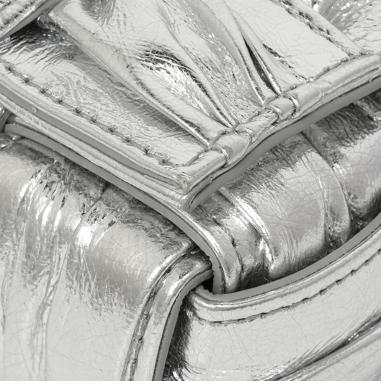Bottega Veneta Metallic Silver Calfskin Intreccio Plisse Small Cassette Crossbody Bag
