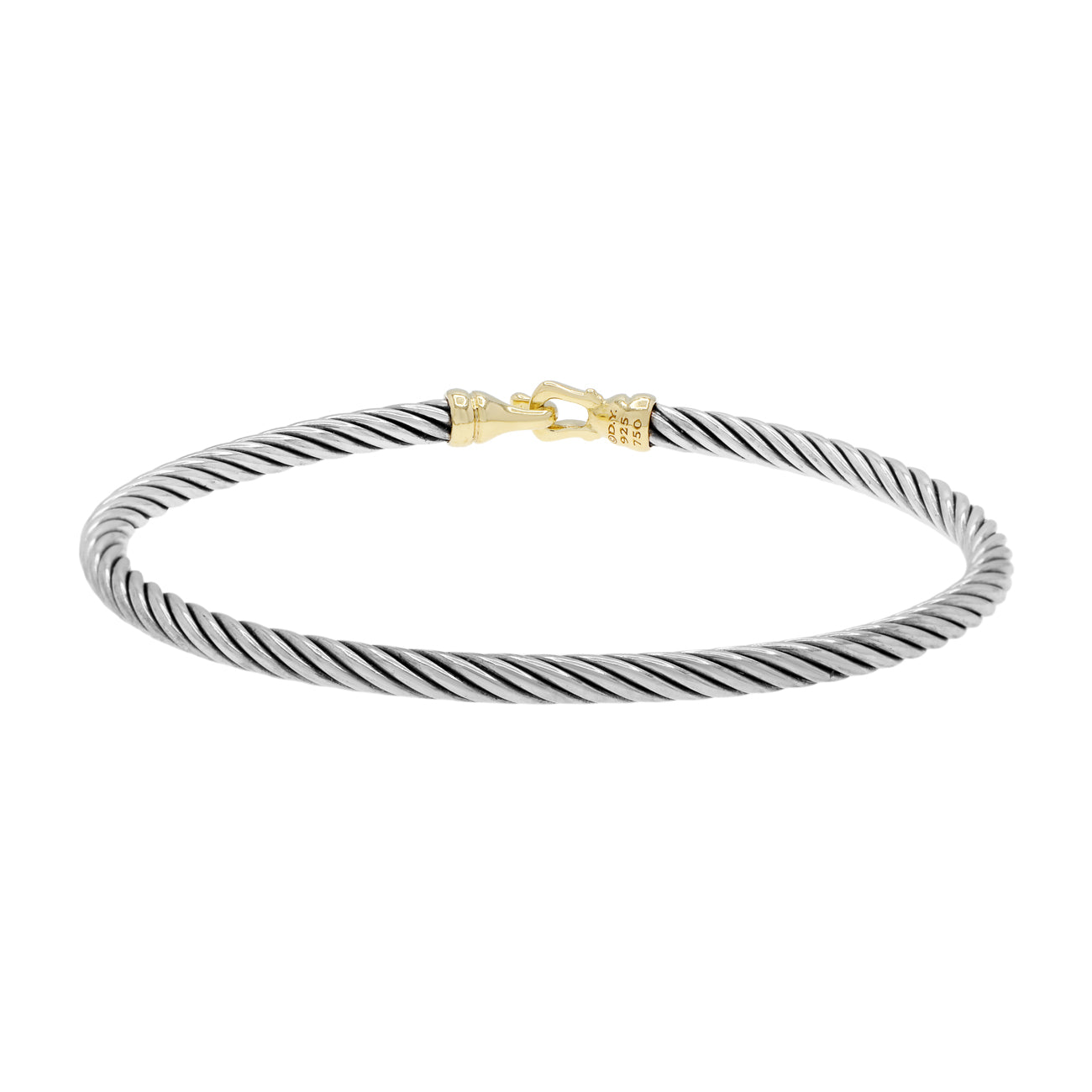 David Yurman Sterling Silver 18K Yellow Gold 3mm Buckle Cable Bracelet