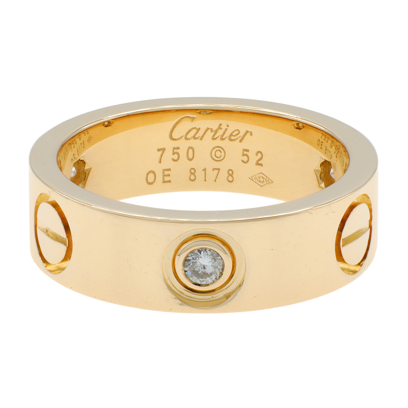 Cartier 18K Yellow Gold 3 Diamond Love Ring