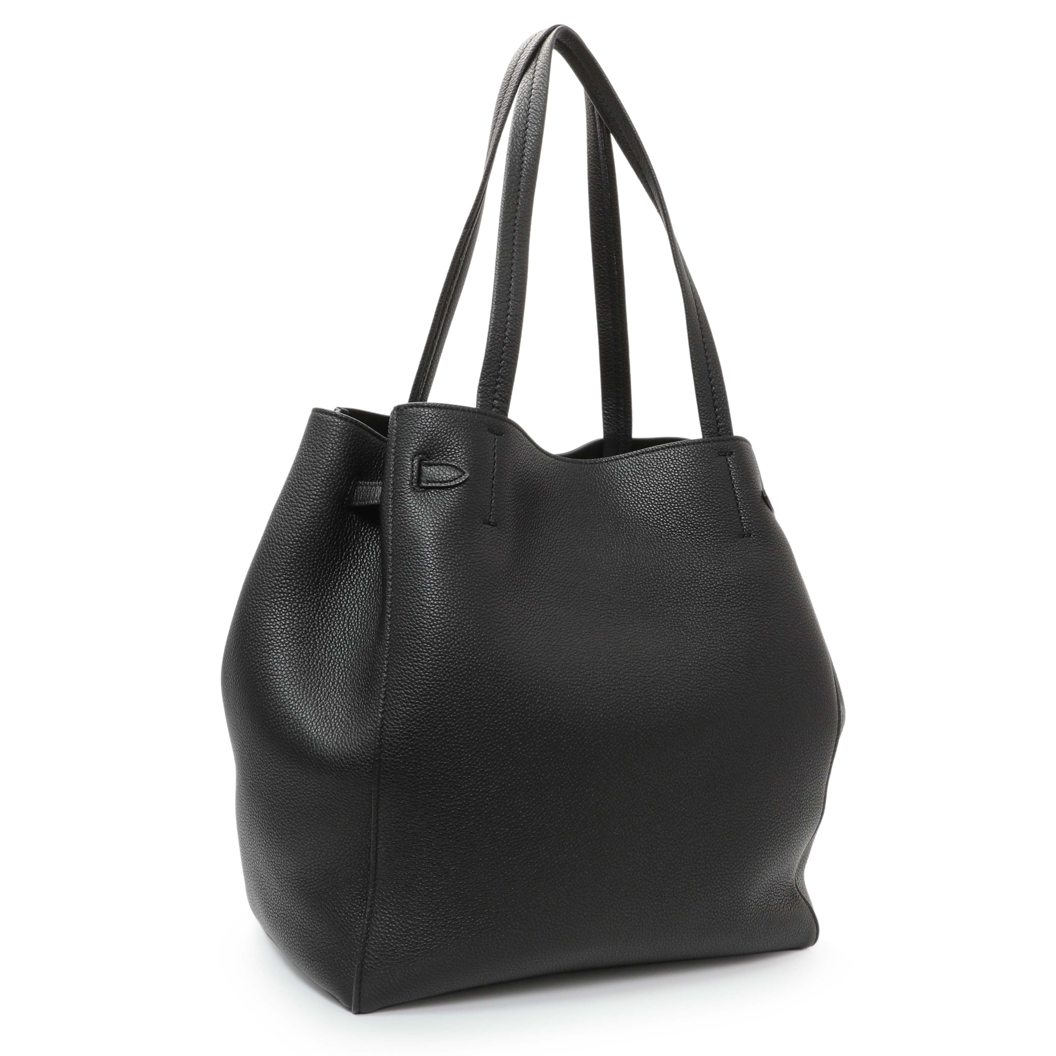 Celine Black Soft Grained Calfskin Medium Belt Cabas Phantom