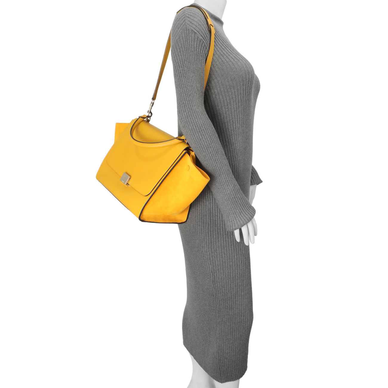 Celine Yellow Drummed Calfskin Suede Medium Trapeze