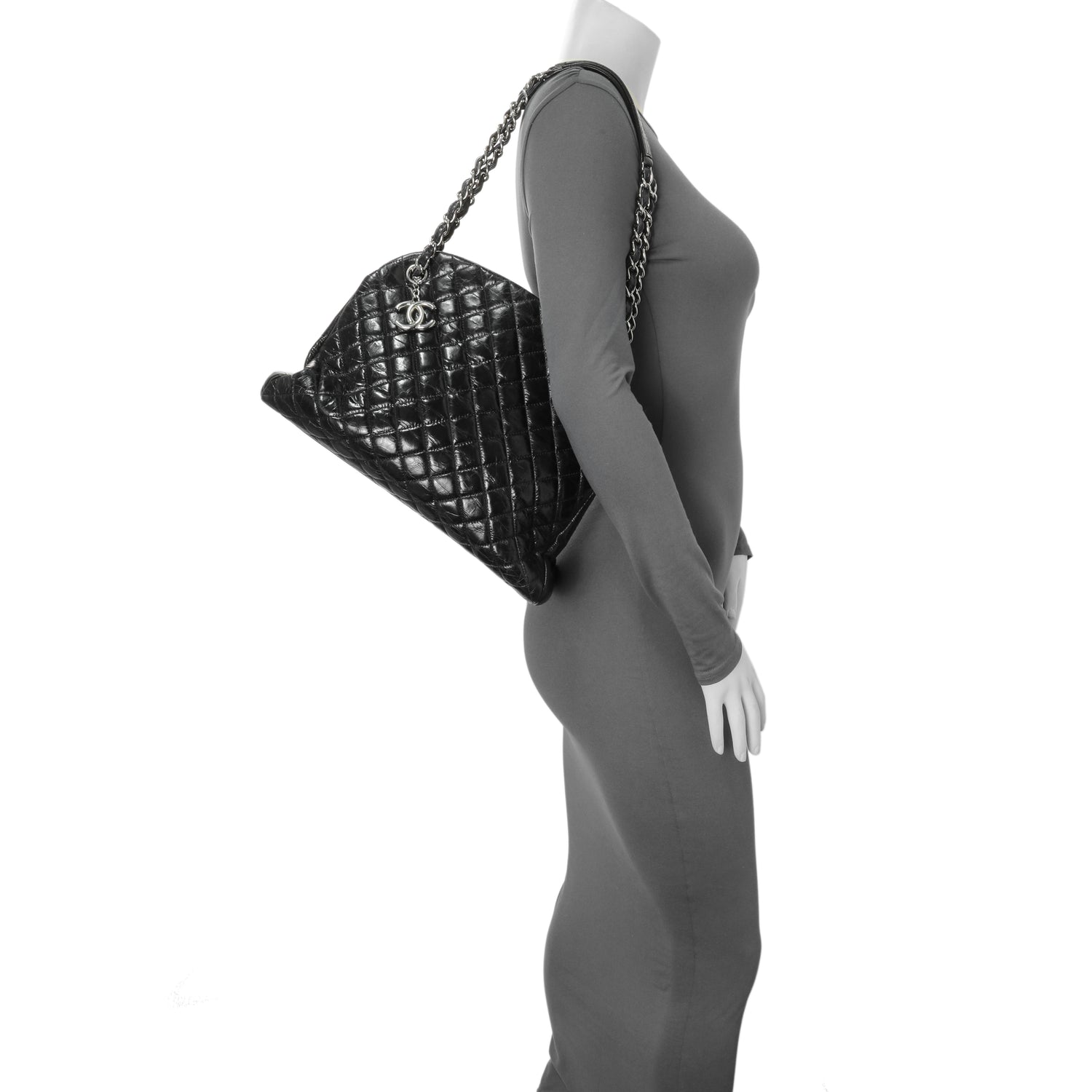 Chanel Glazed Calfskin Quilted Large Mademoiselle Bowling Bag