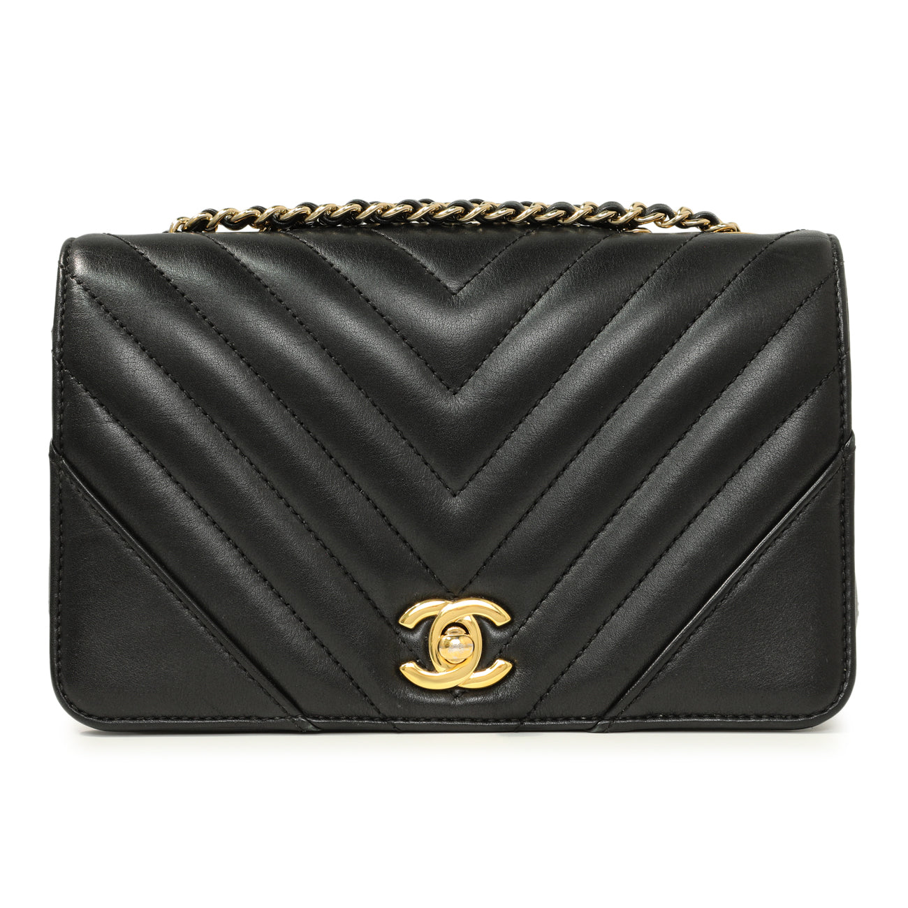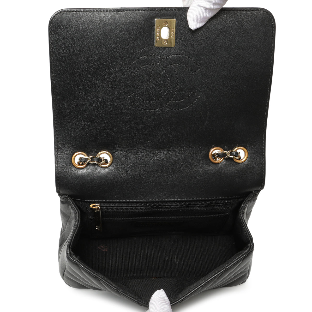 Chanel Black Chevron Quilted Calfskin Mini Statement Flap