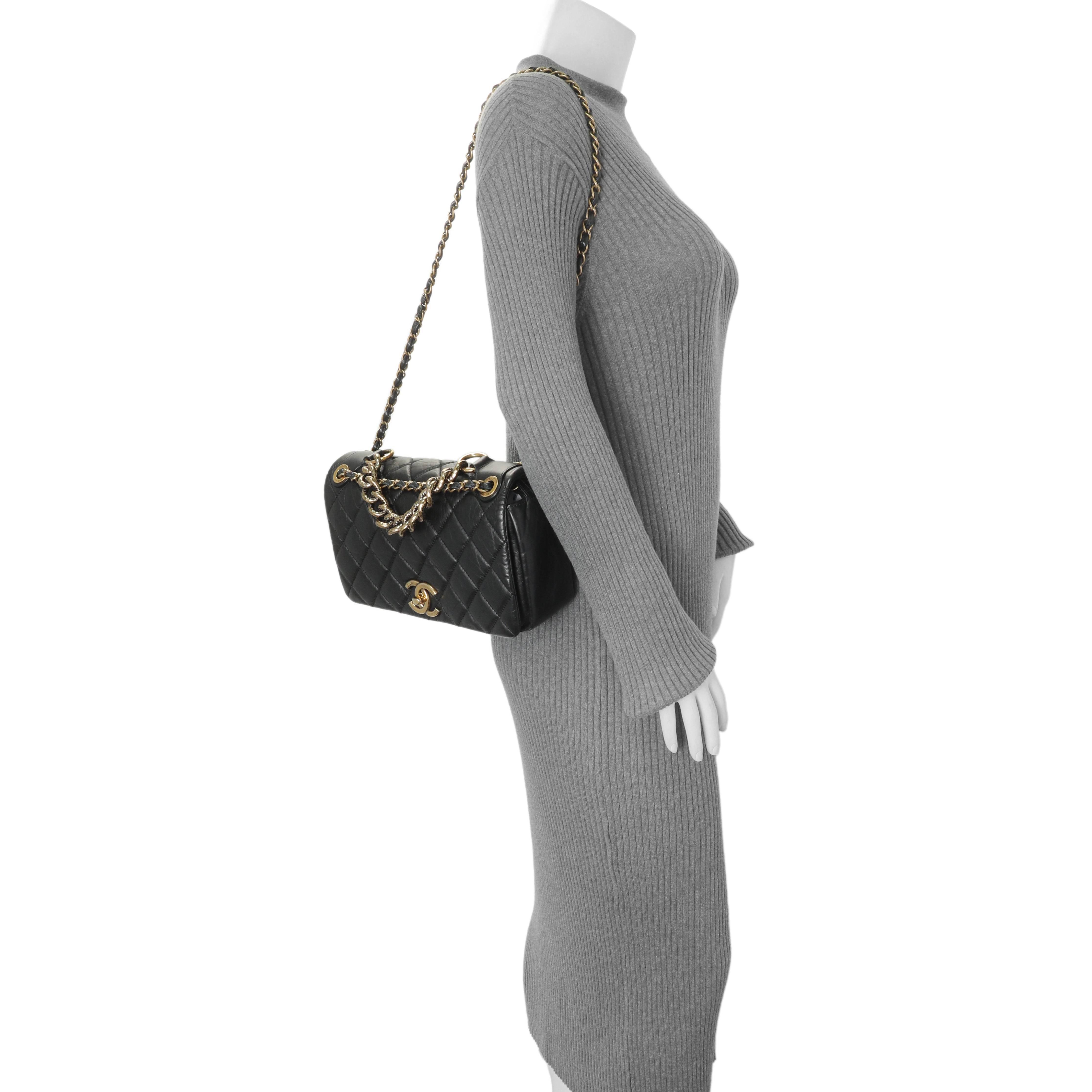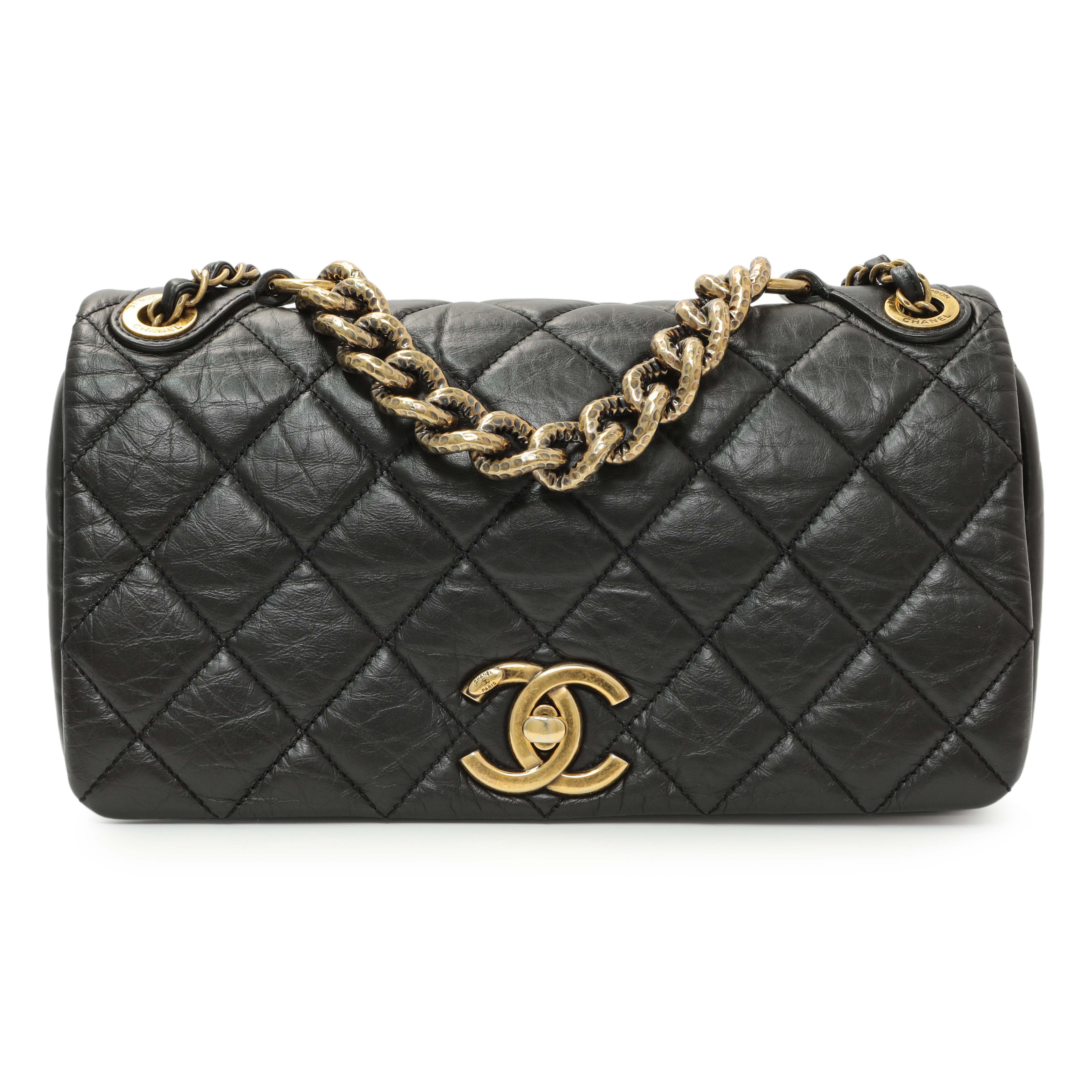 Chanel Black Quilted Aged Calfskin Pondichery Flap