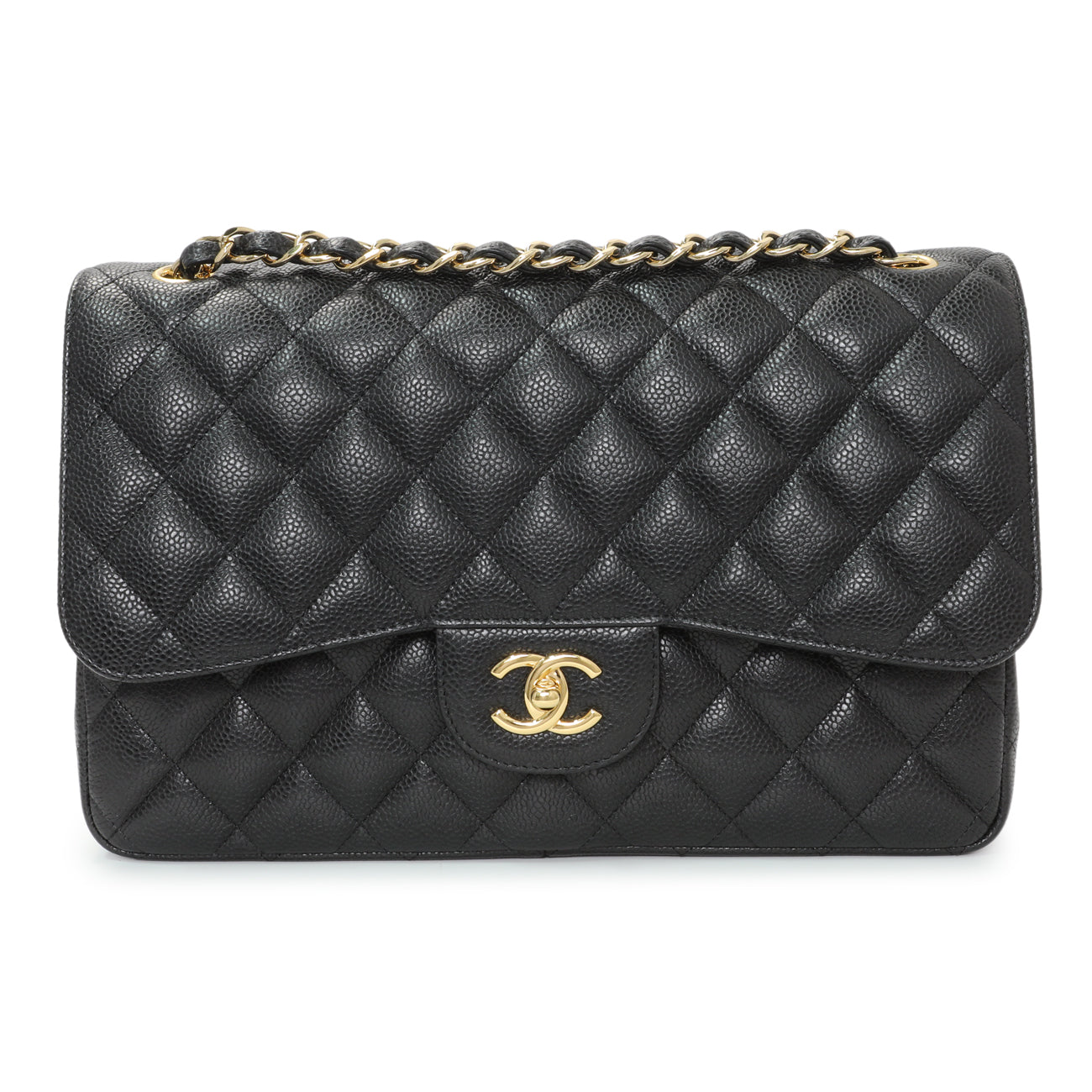 Chanel Black Quilted Caviar Jumbo Double Flap