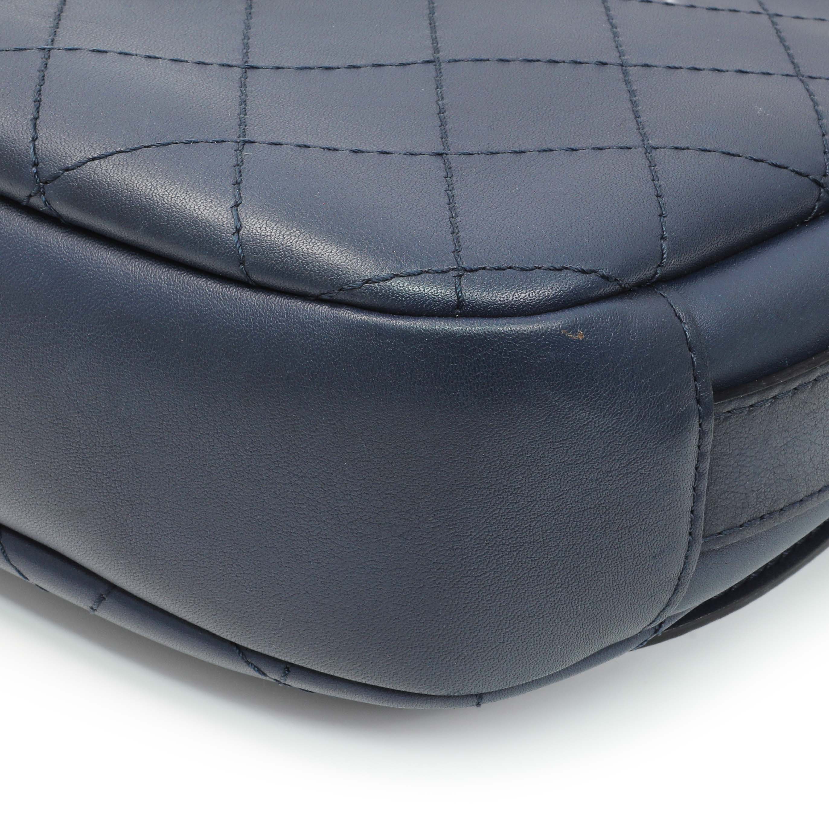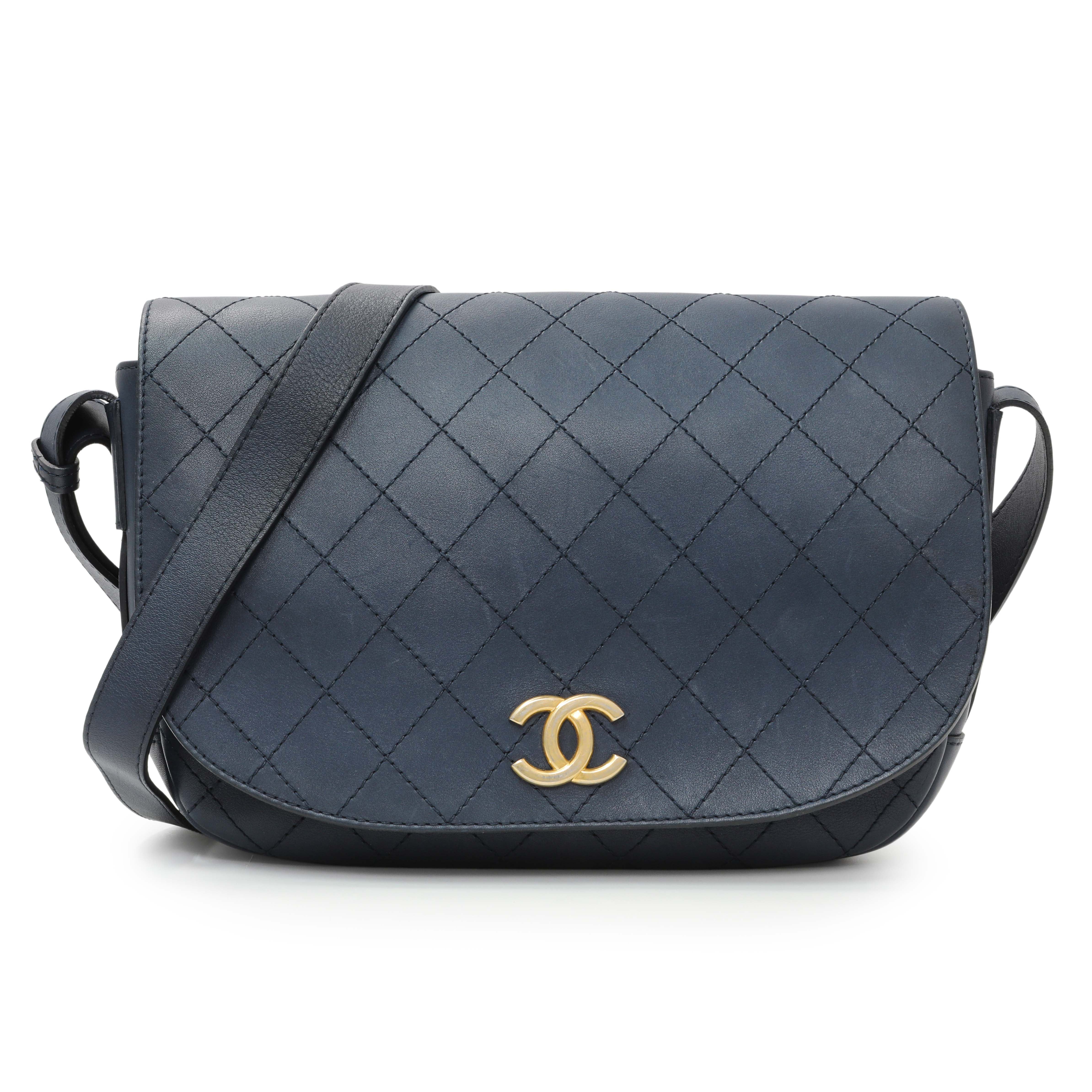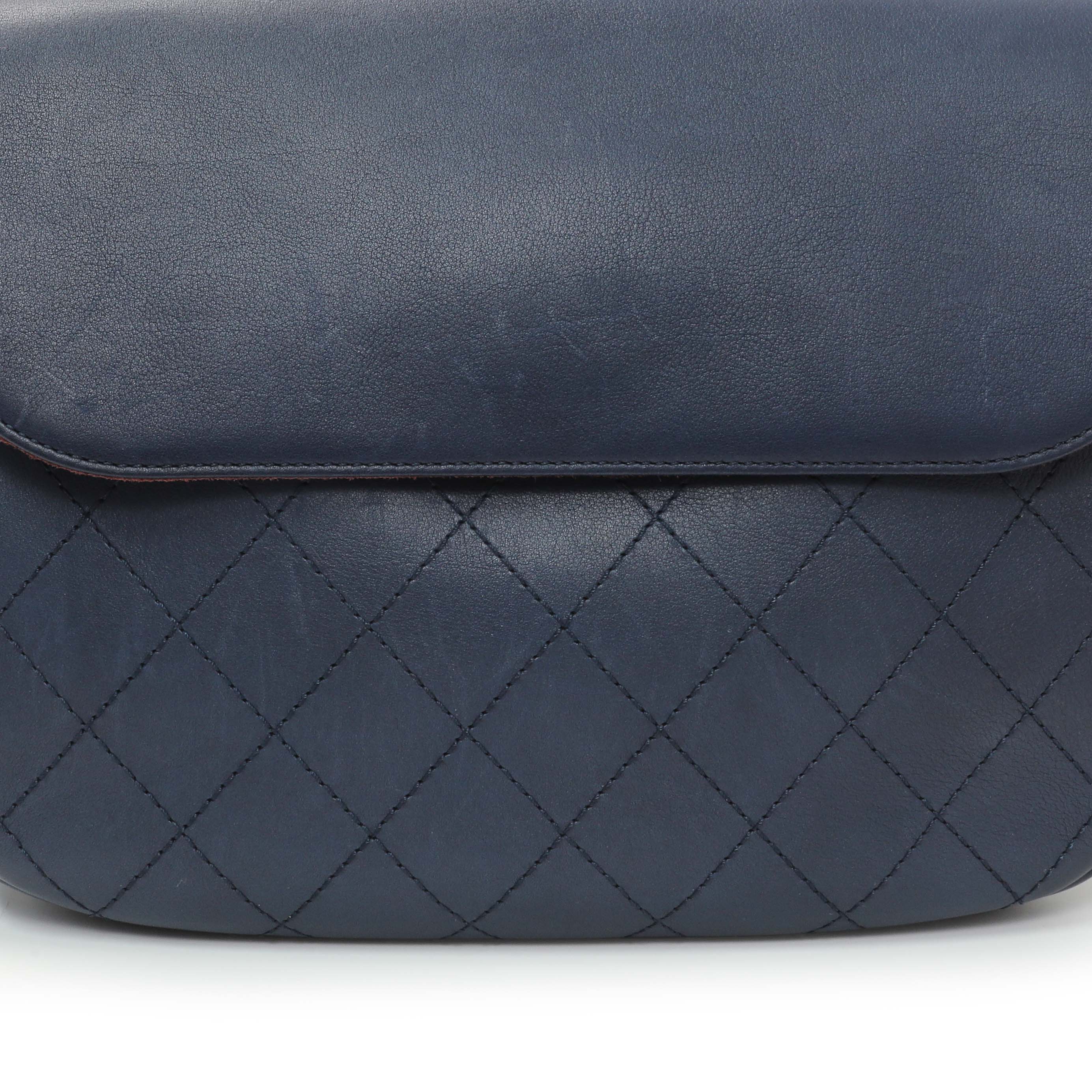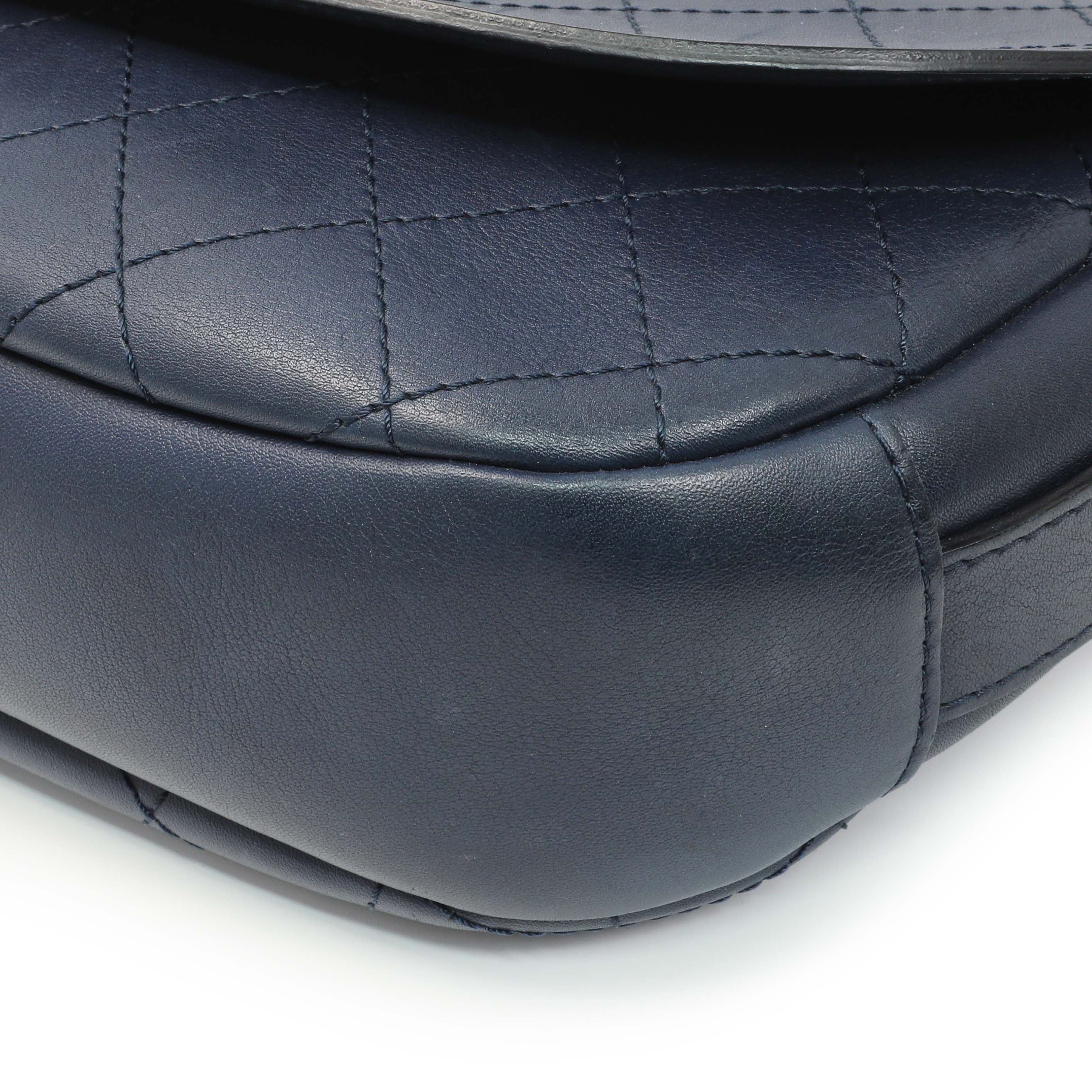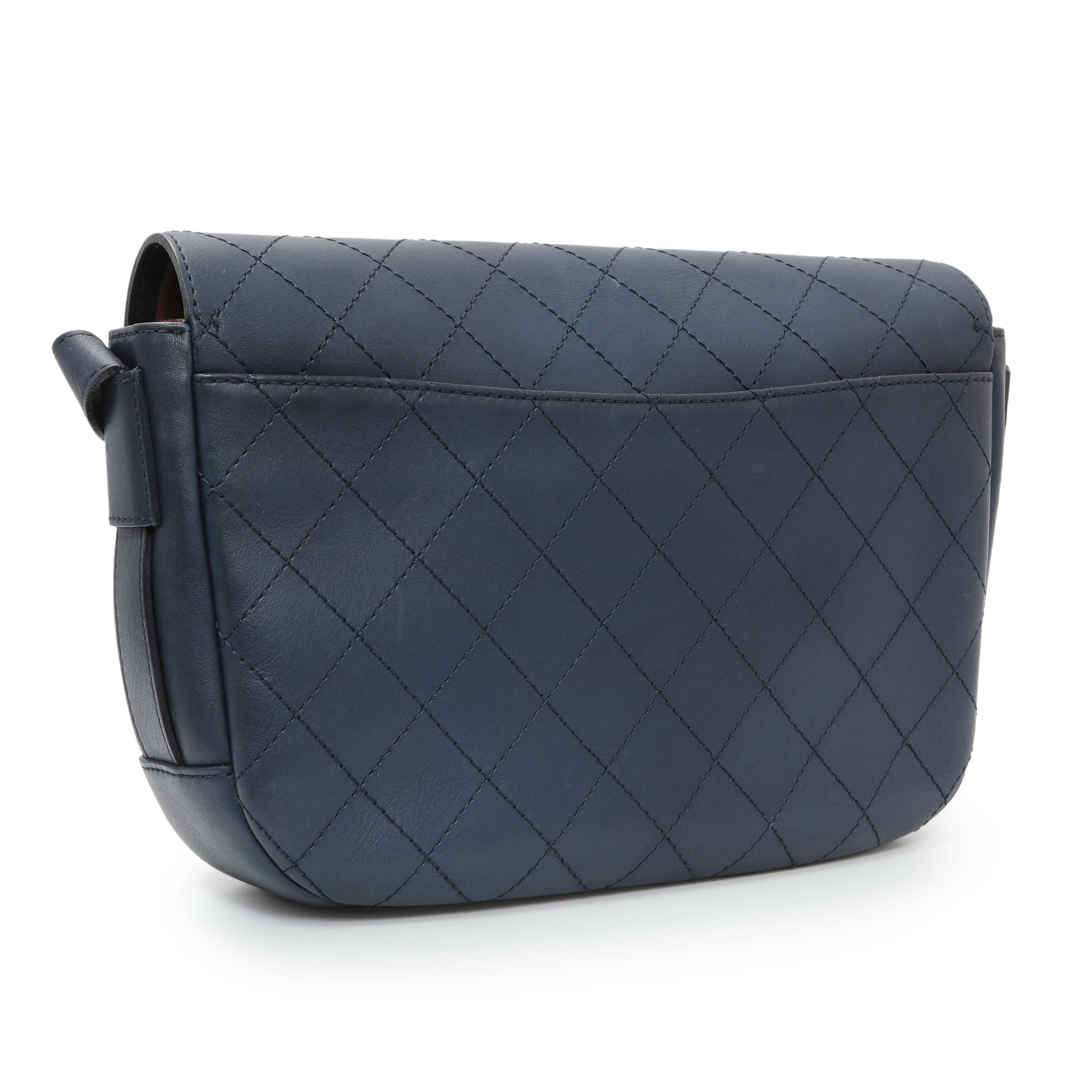 Chanel Blue Calfskin Stitched Messenger Flap Bag