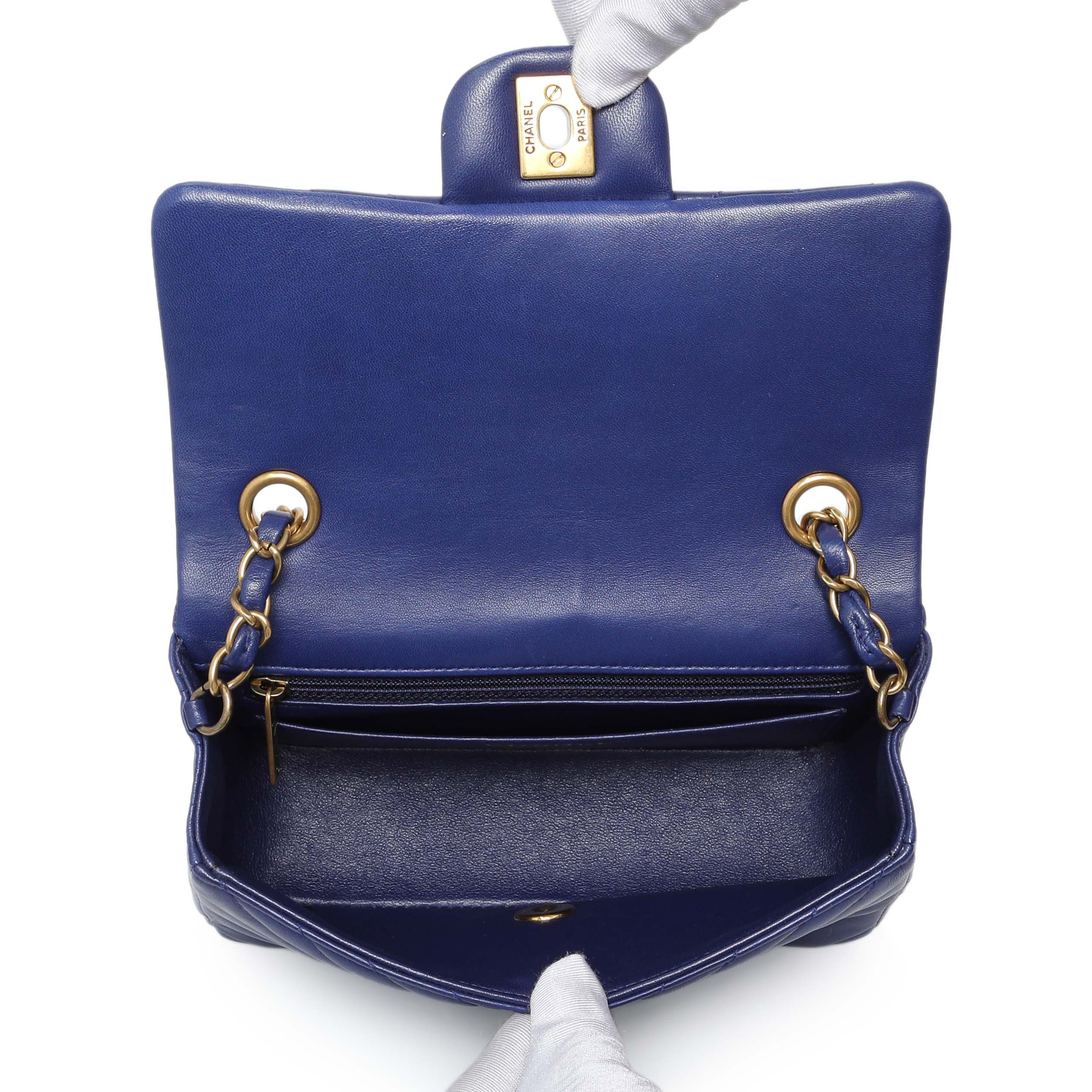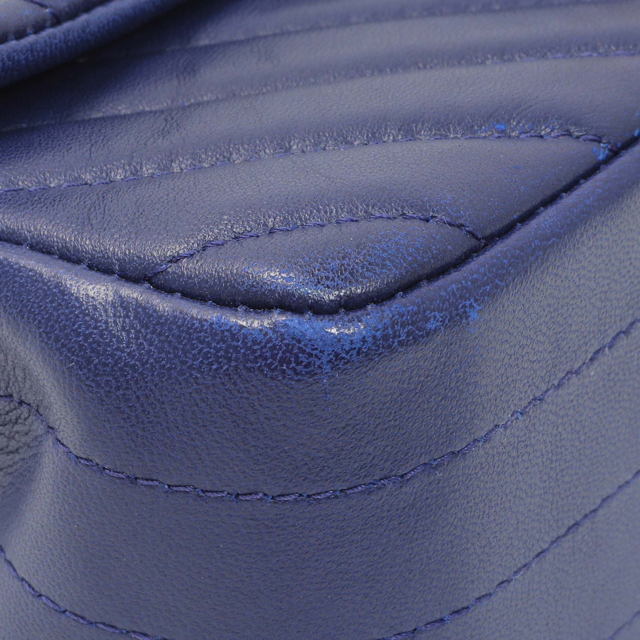 Chanel Blue Chevron Quilted Lambskin Mini Rectangular Flap