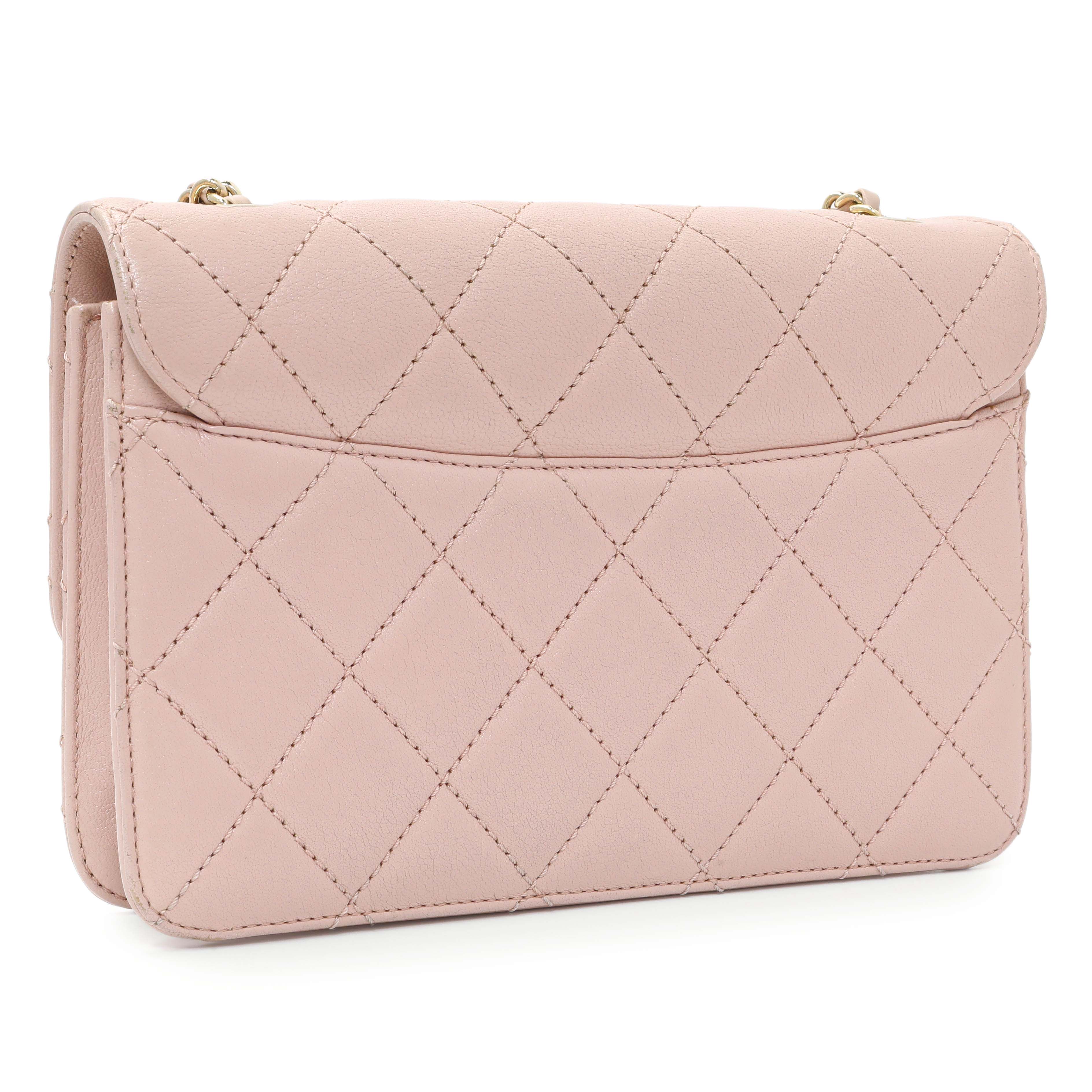Chanel Pink Quilted Sheepskin Mini Beauty Lock Flap