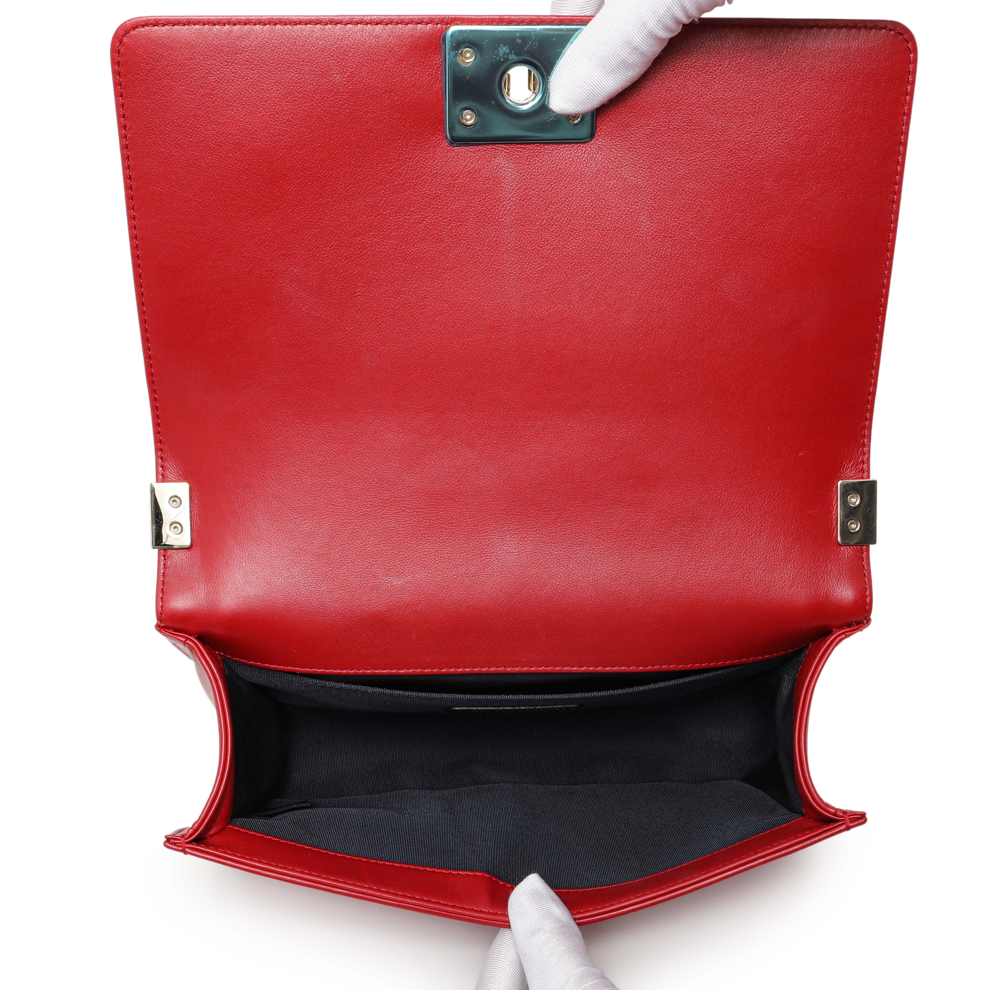 Chanel Red Chevron Quilted Lambskin Medium Boy Flap