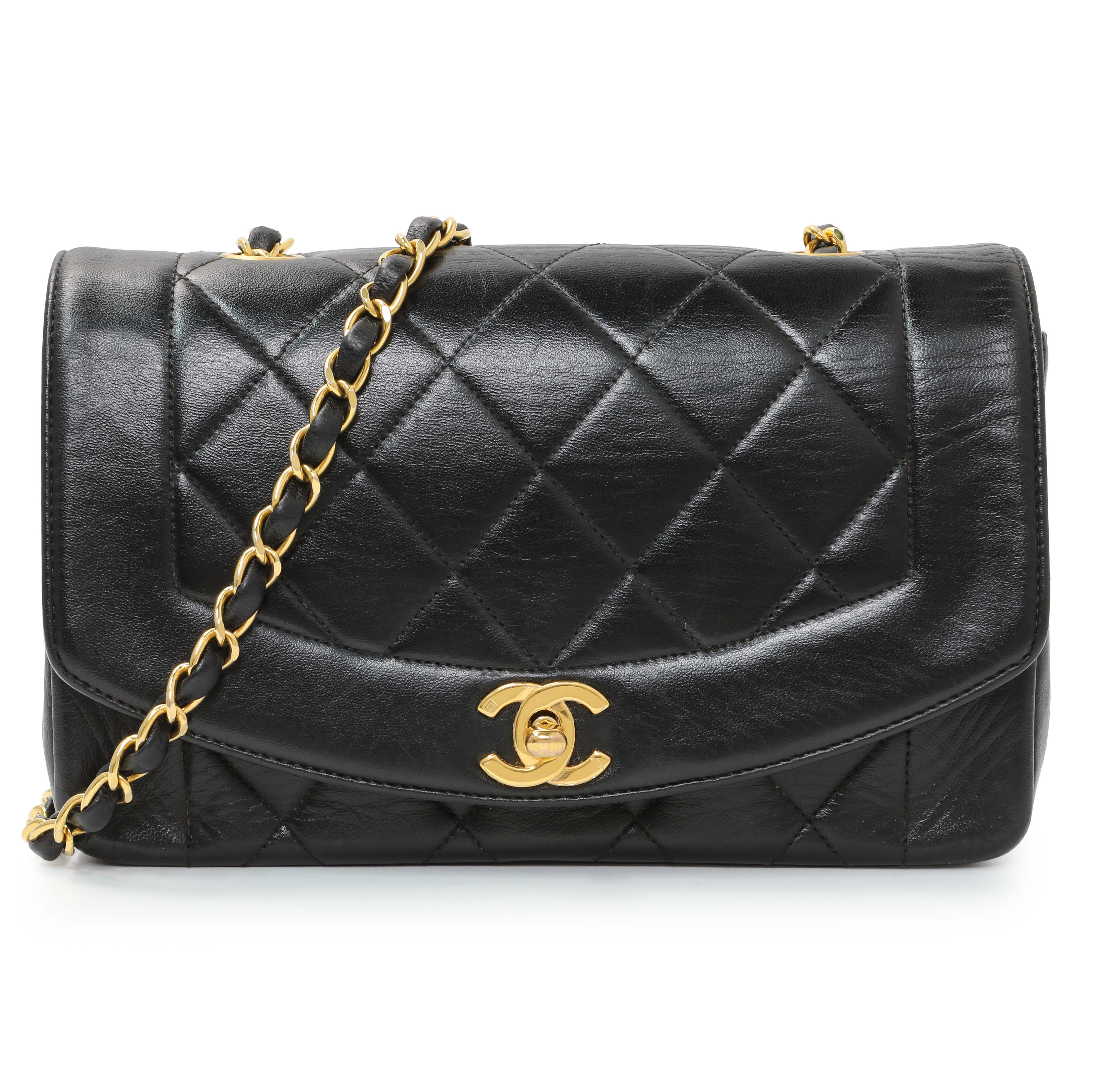 Chanel Vintage Black Quilted Lambskin Small Diana Flap
