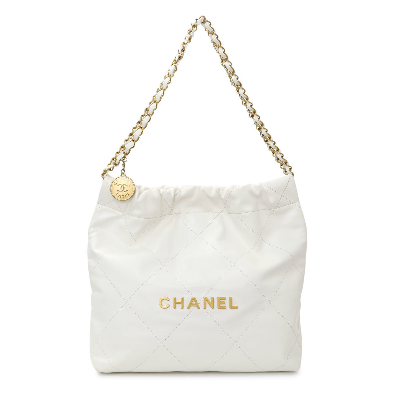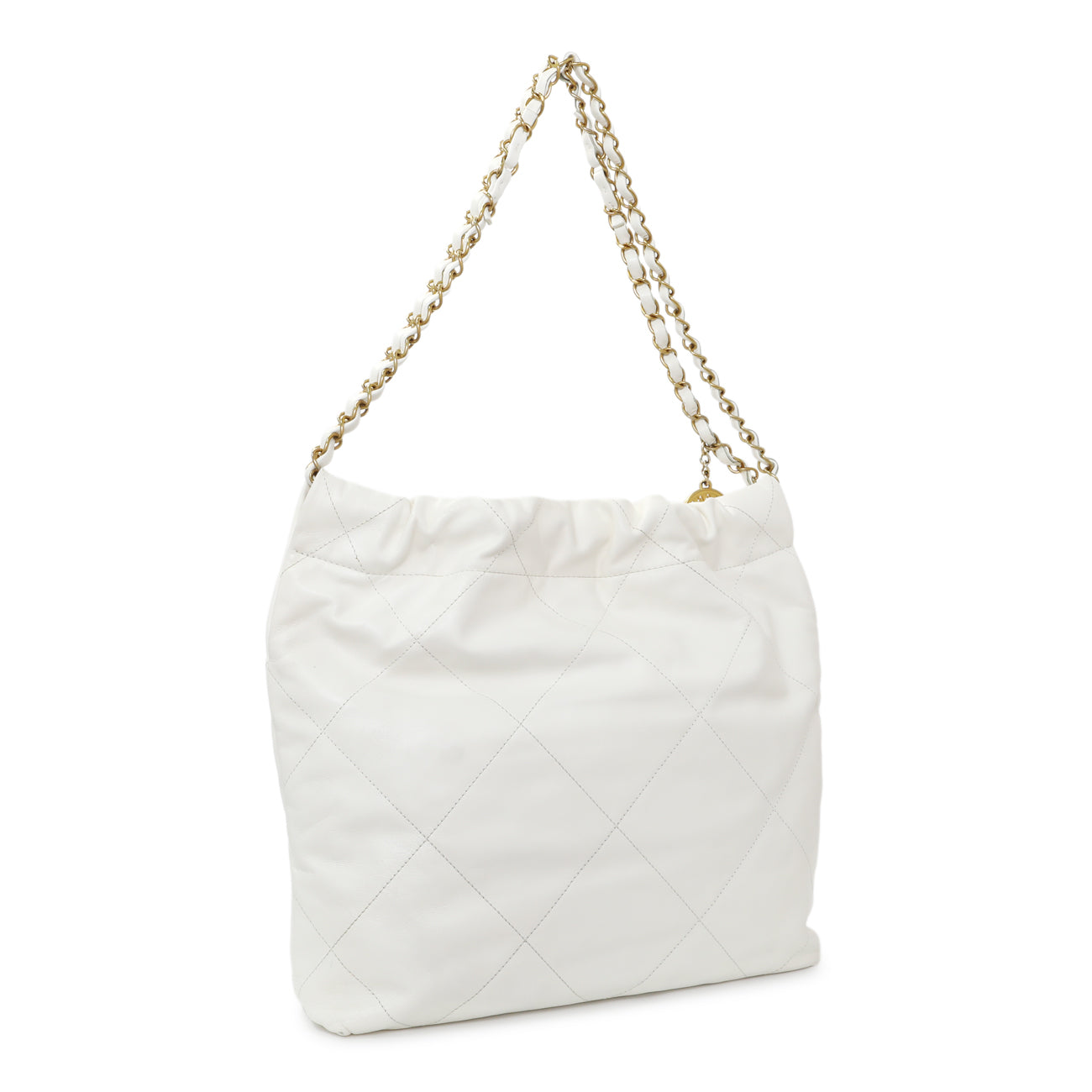 Chanel White Shiny Quilted Calfskin Small Chanel 22