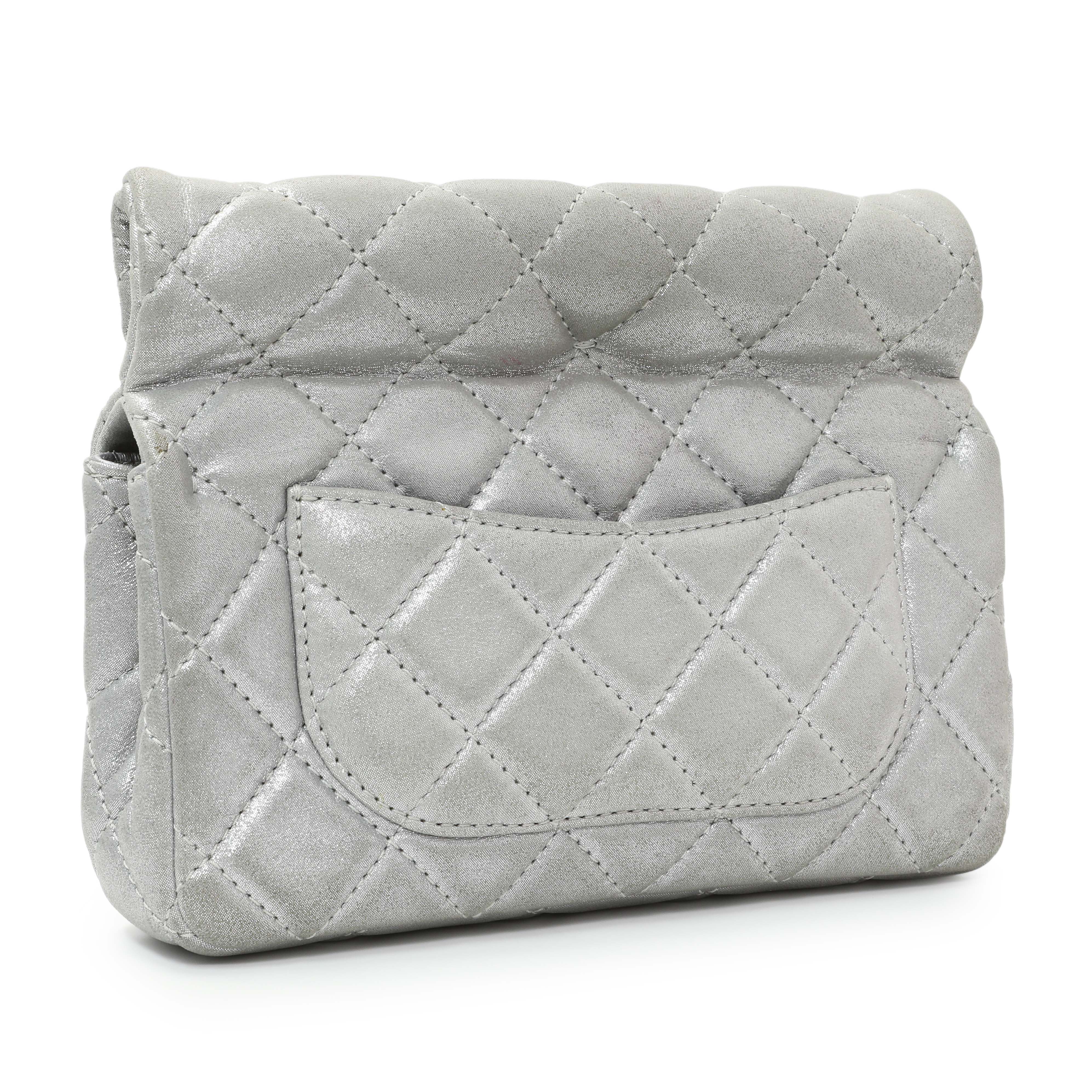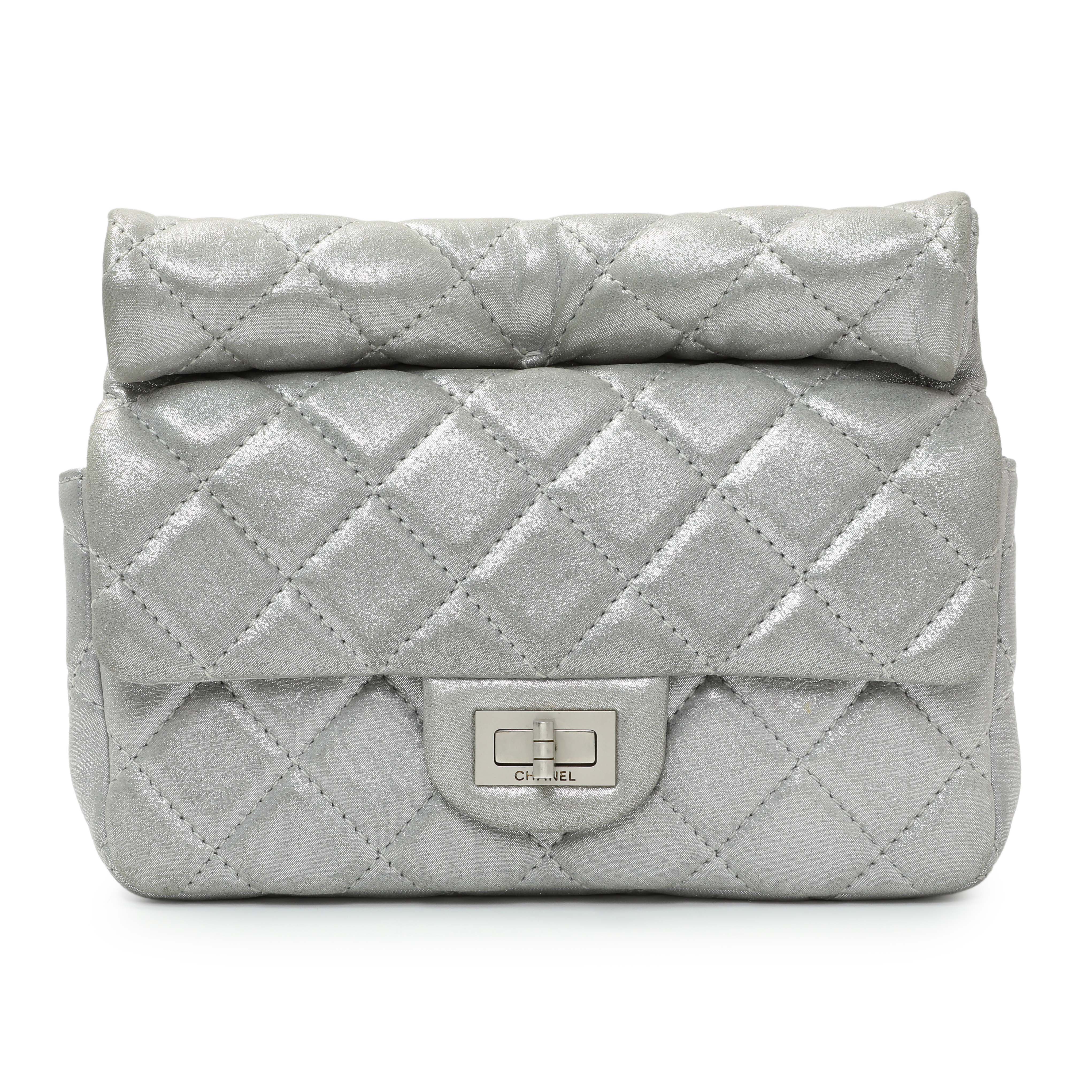 Chanel Silver Iridescent Calfskin Roll Reissue Clutch