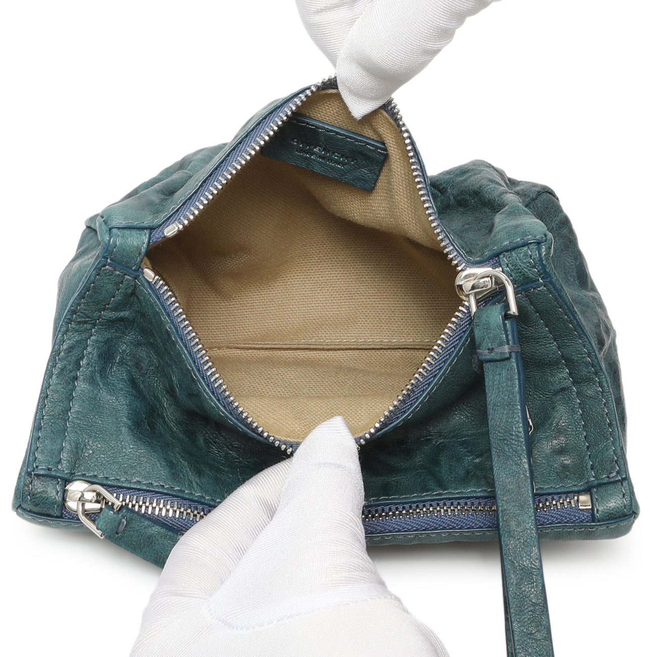 Givenchy Teal Tumbled Sheepskin Pandora Wristlet Clutch