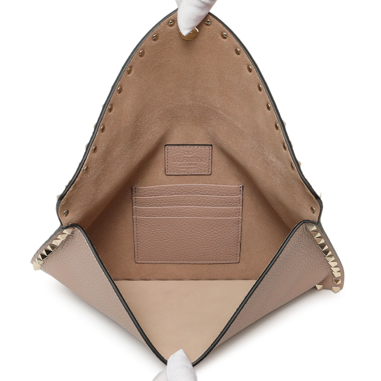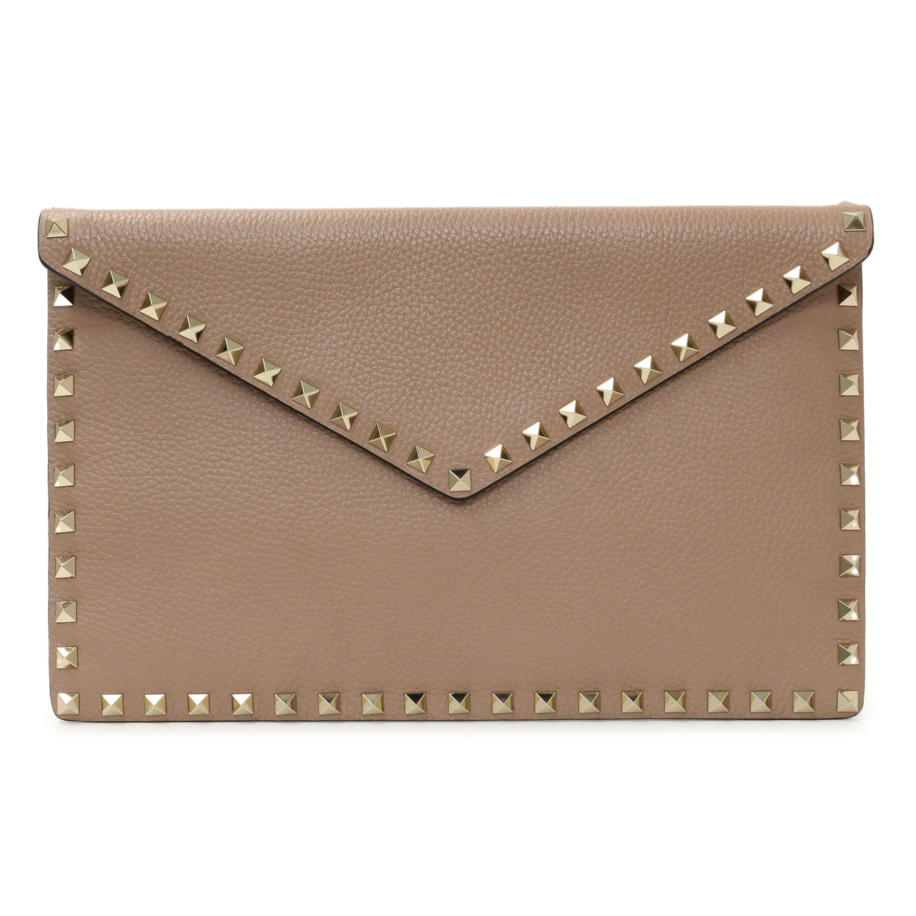 Valentino Poudre Pebbled Calfskin Large Rockstud Envelope Pouch