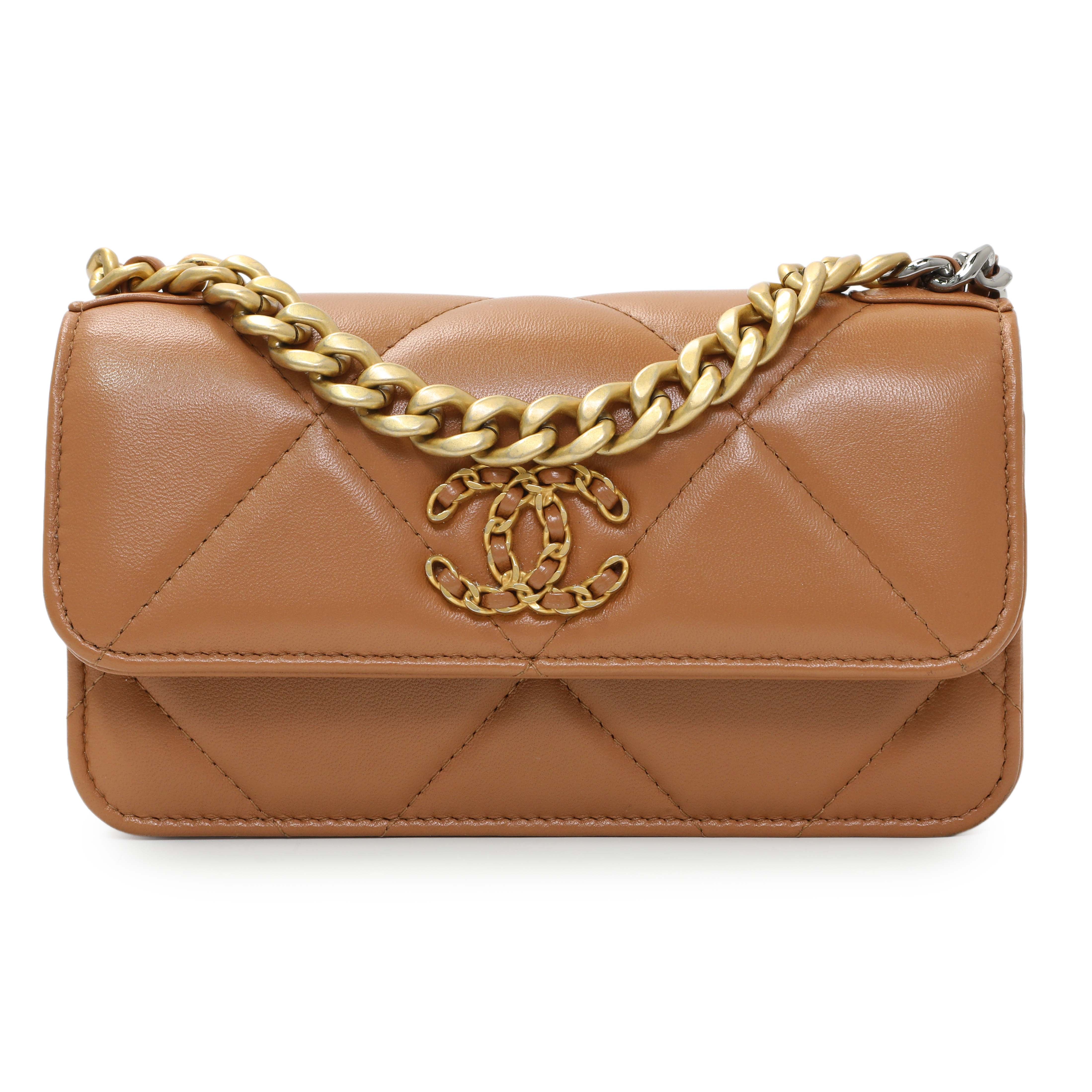 Chanel Brown Lambskin Quilted Chanel 19 Glasses Case With Chain