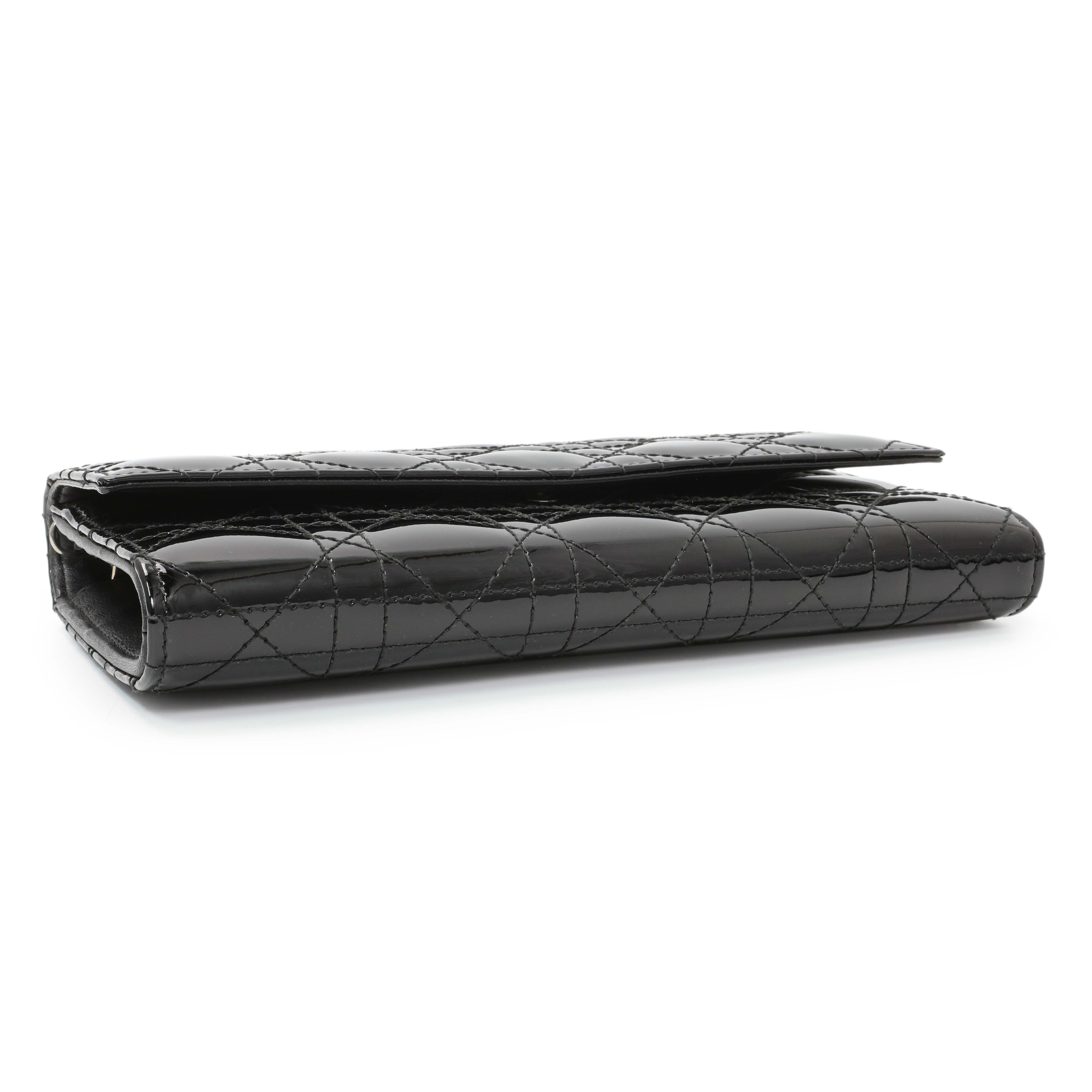 Christian Dior Black Patent Cannage Lady Dior Rendezvous Wallet On Chain