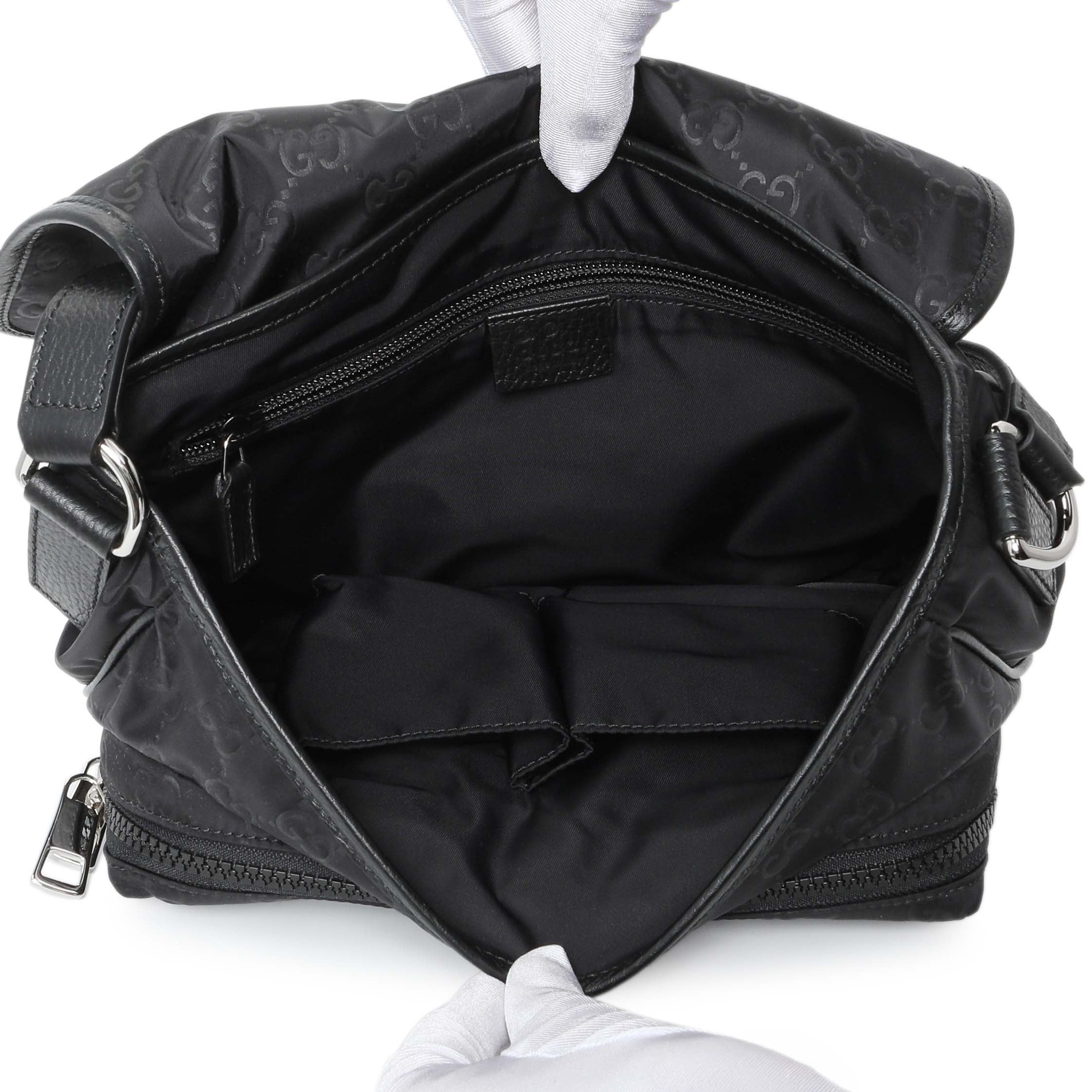 Gucci Black Nylon Monogram Double Buckle Flap Messenger Bag