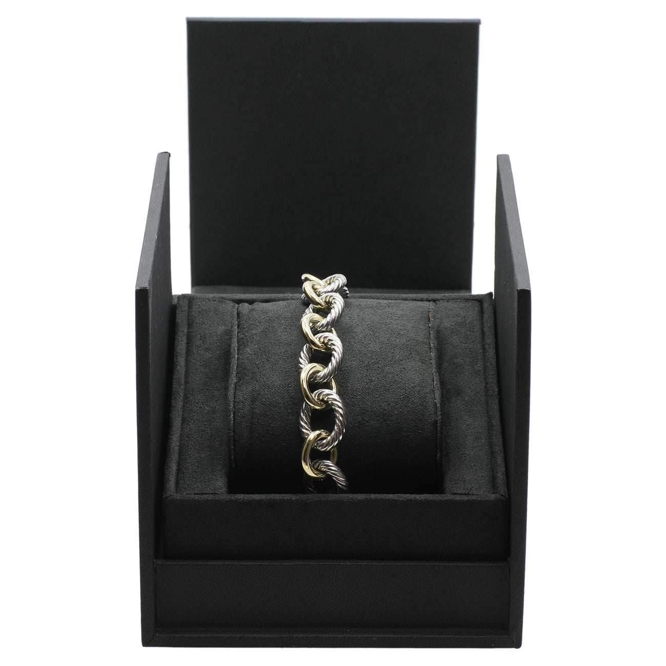 David Yurman Sterling Silver 18K Yellow Gold 12mm Oval Link Chain Bracelet