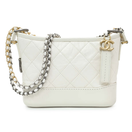 Chanel White Aged Calfskin Quilted Small Gabrielle Hobo