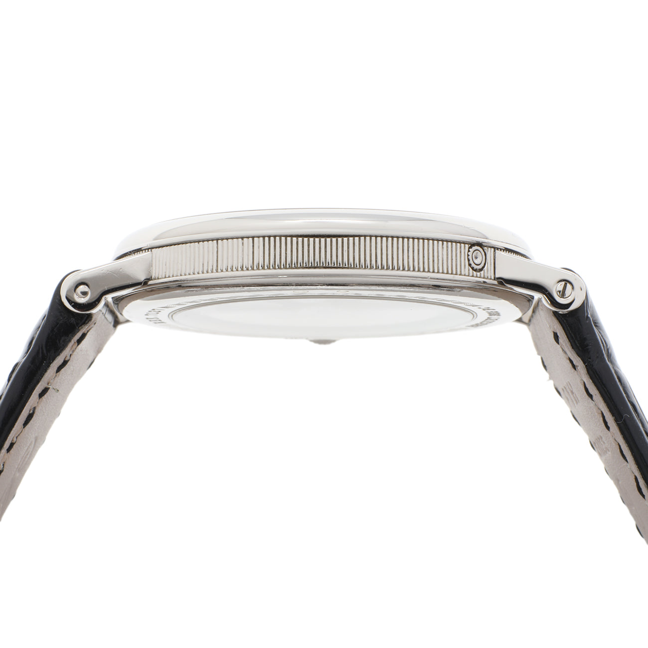 - Bracelet: Black leather with 18K white gold folding clasp