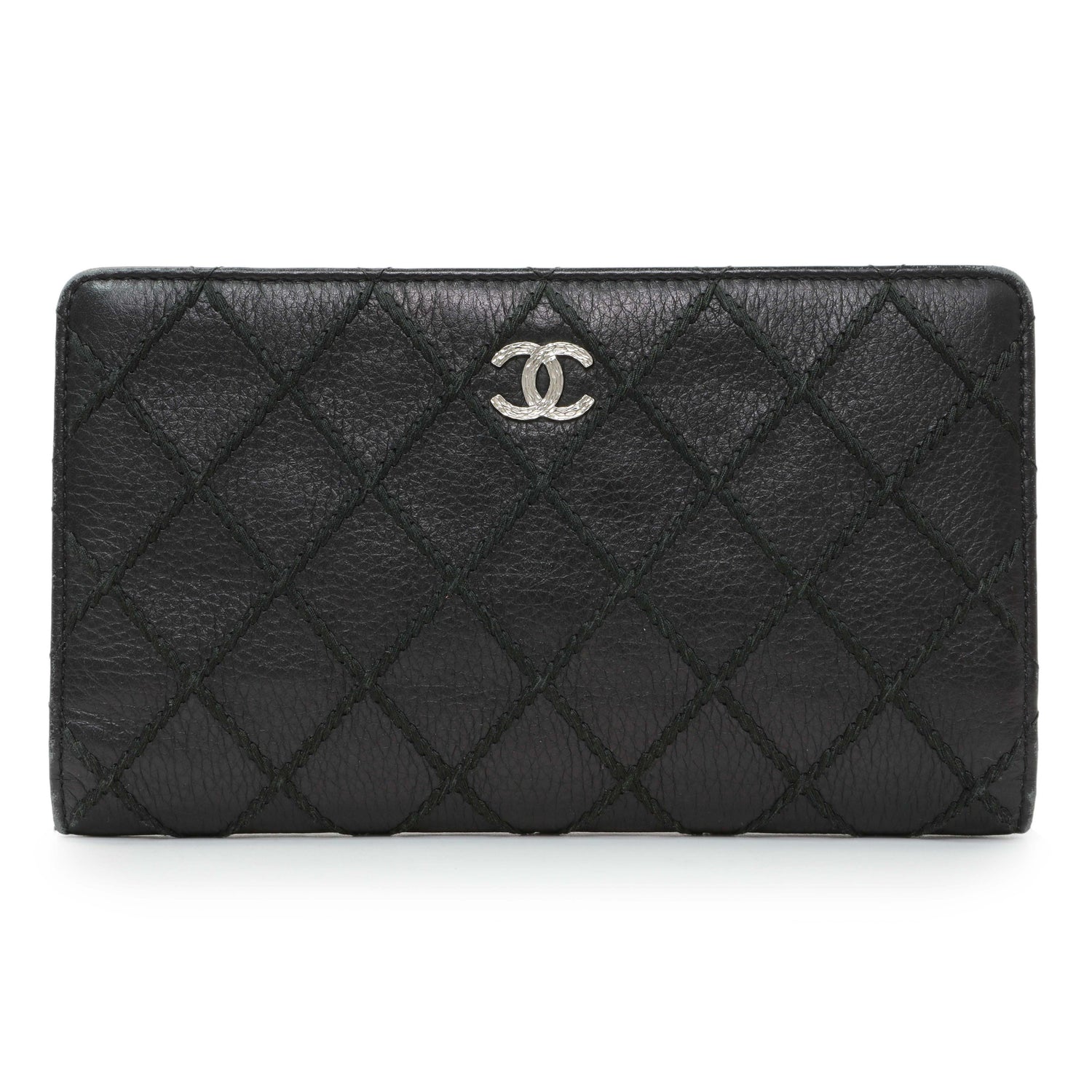 Chanel Black Calfskin Wild Stitch Wallet Accessories Chanel