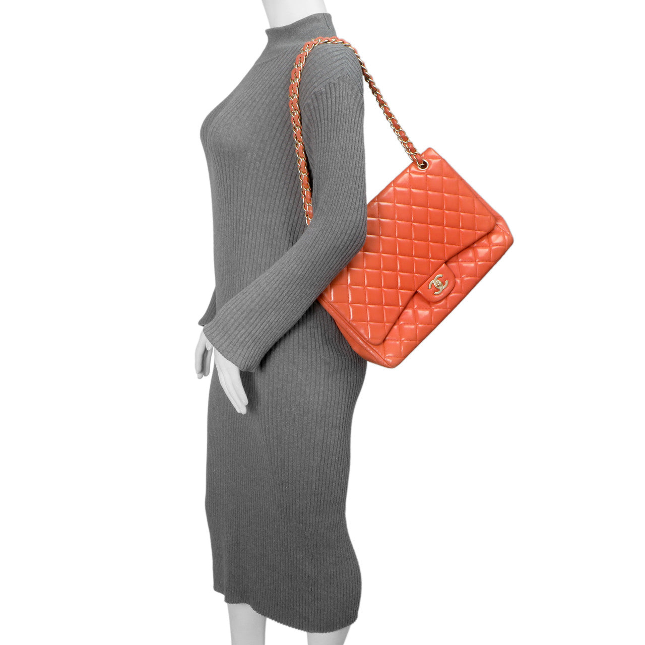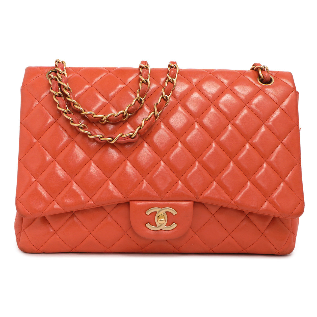 Chanel Coral Quilted Lambskin Maxi Classic Single Flap