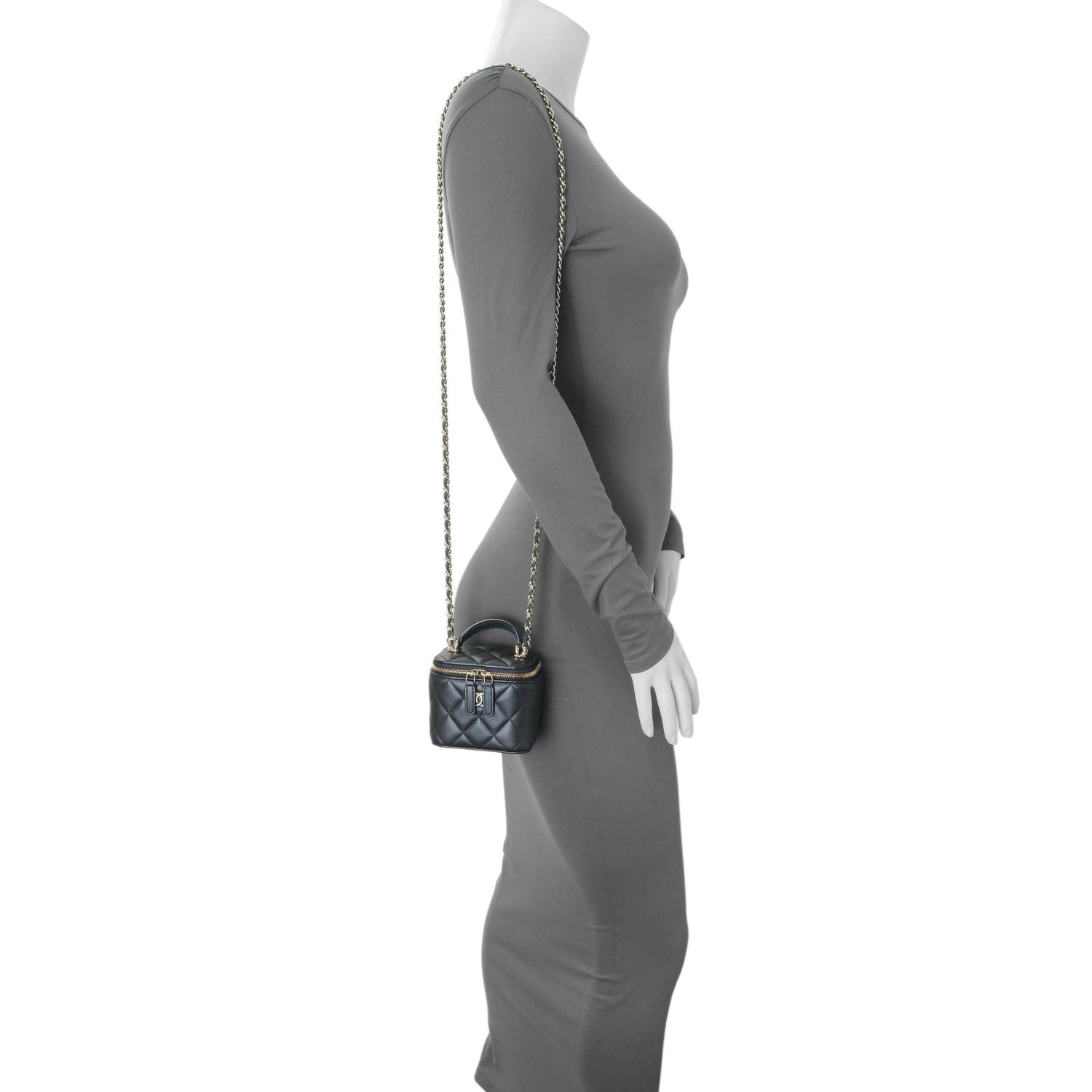 Chanel Navy Lambskin Mini Vanity Case With Chain