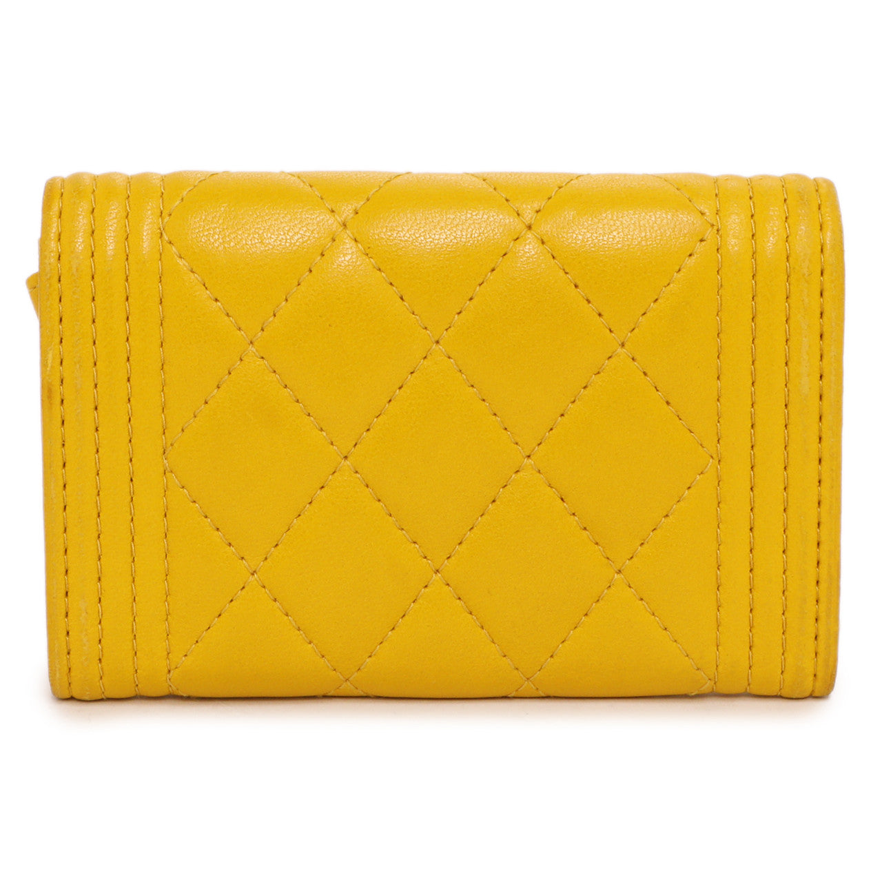 Chanel Yellow Quilted Lambskin Boy Flap Card Holder