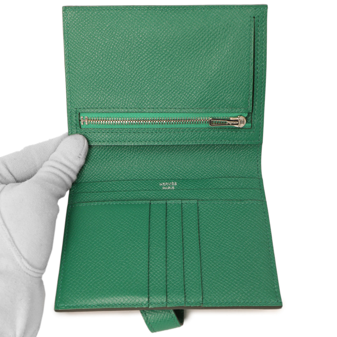 Hermes Vert Vertigo Epsom Bearn Compact Wallet