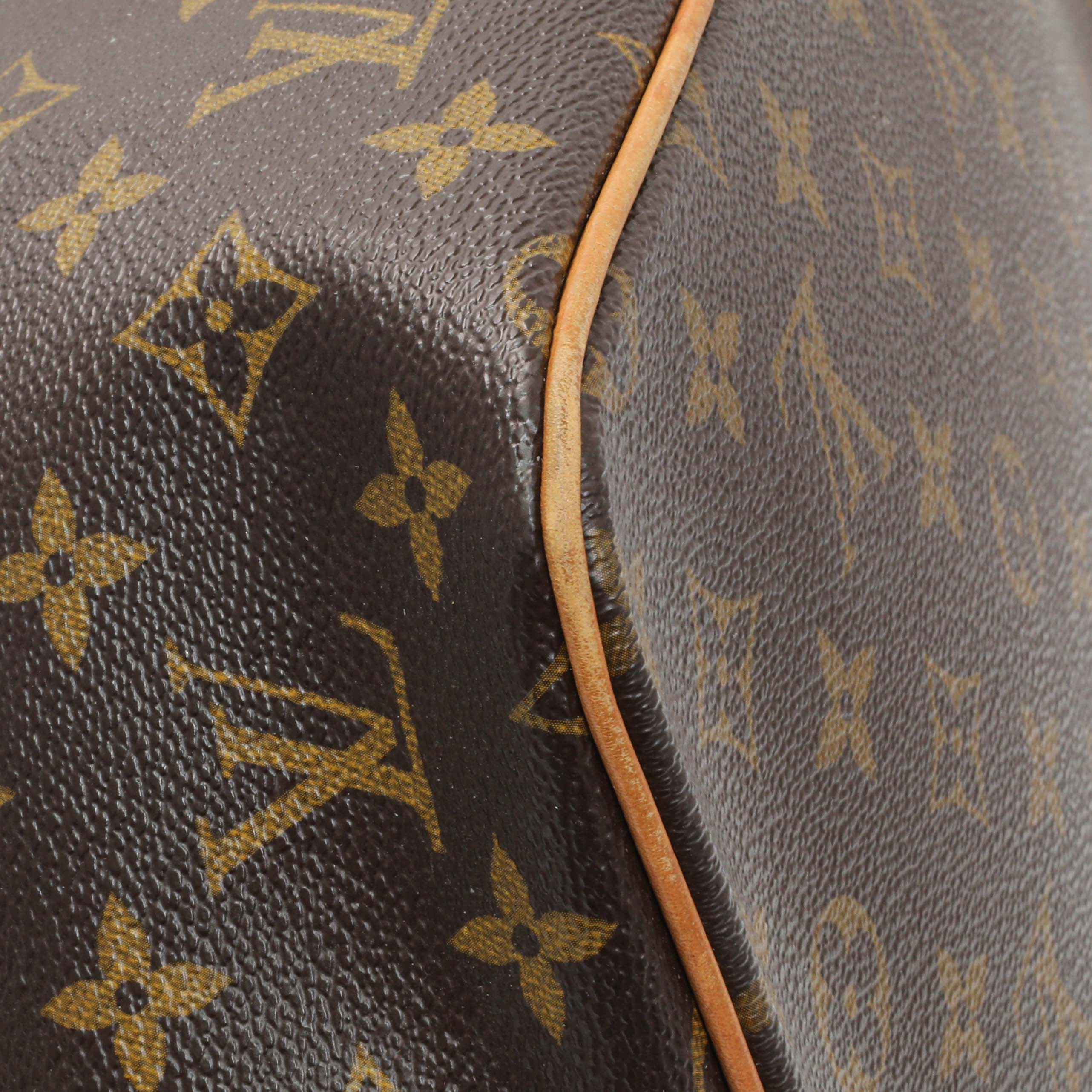 Exterior: Patina and wear on leather handles and trim, scuffs on hardware