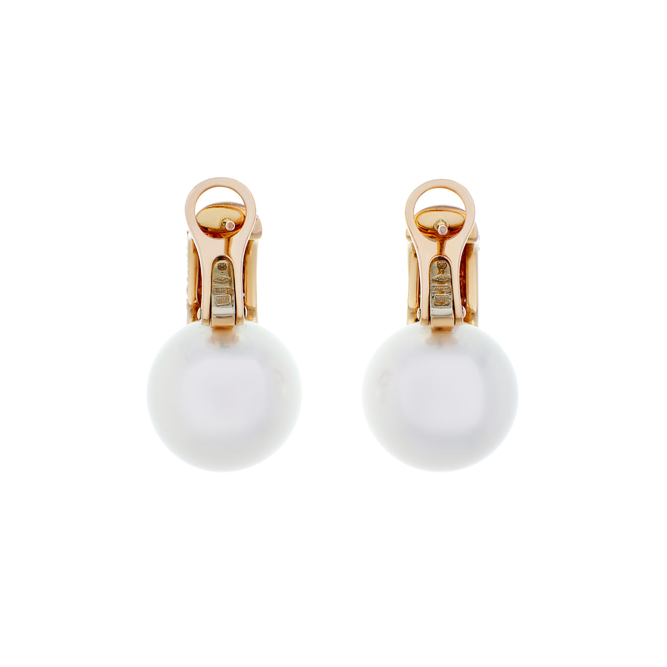 Mikimoto 18K Rose Gold South Sea Pearl Pink Diamond Earrings