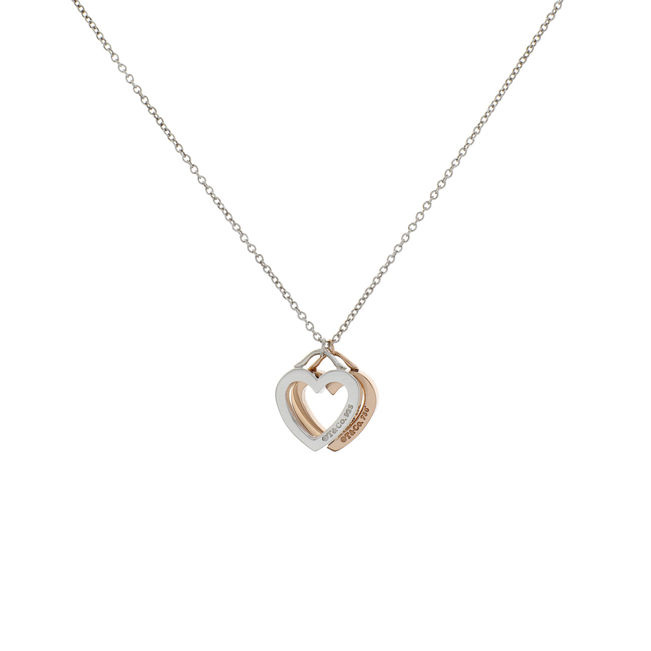 Tiffany & Co. Sterling Silver 18K Rose Gold Double Open Heart Pendant Necklace