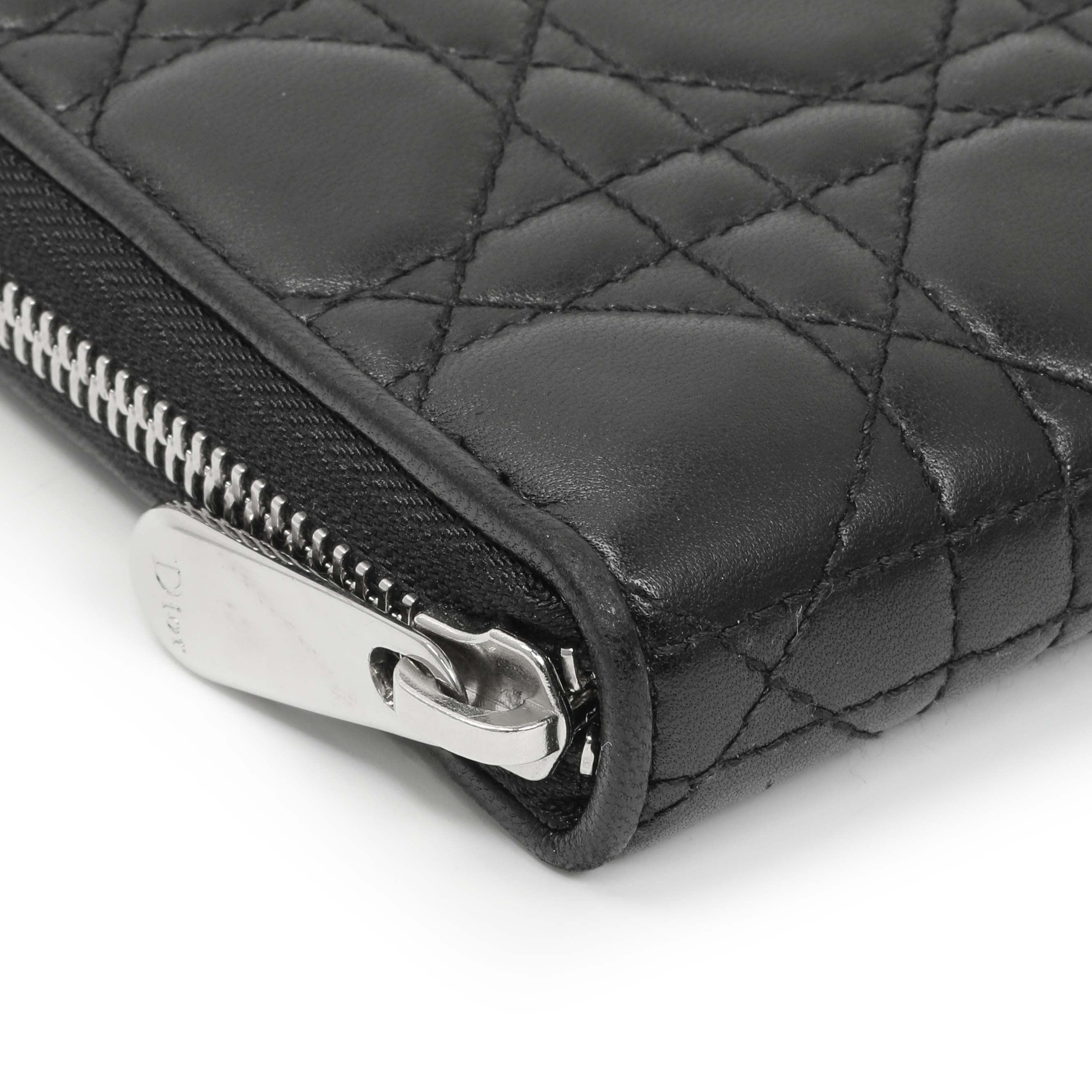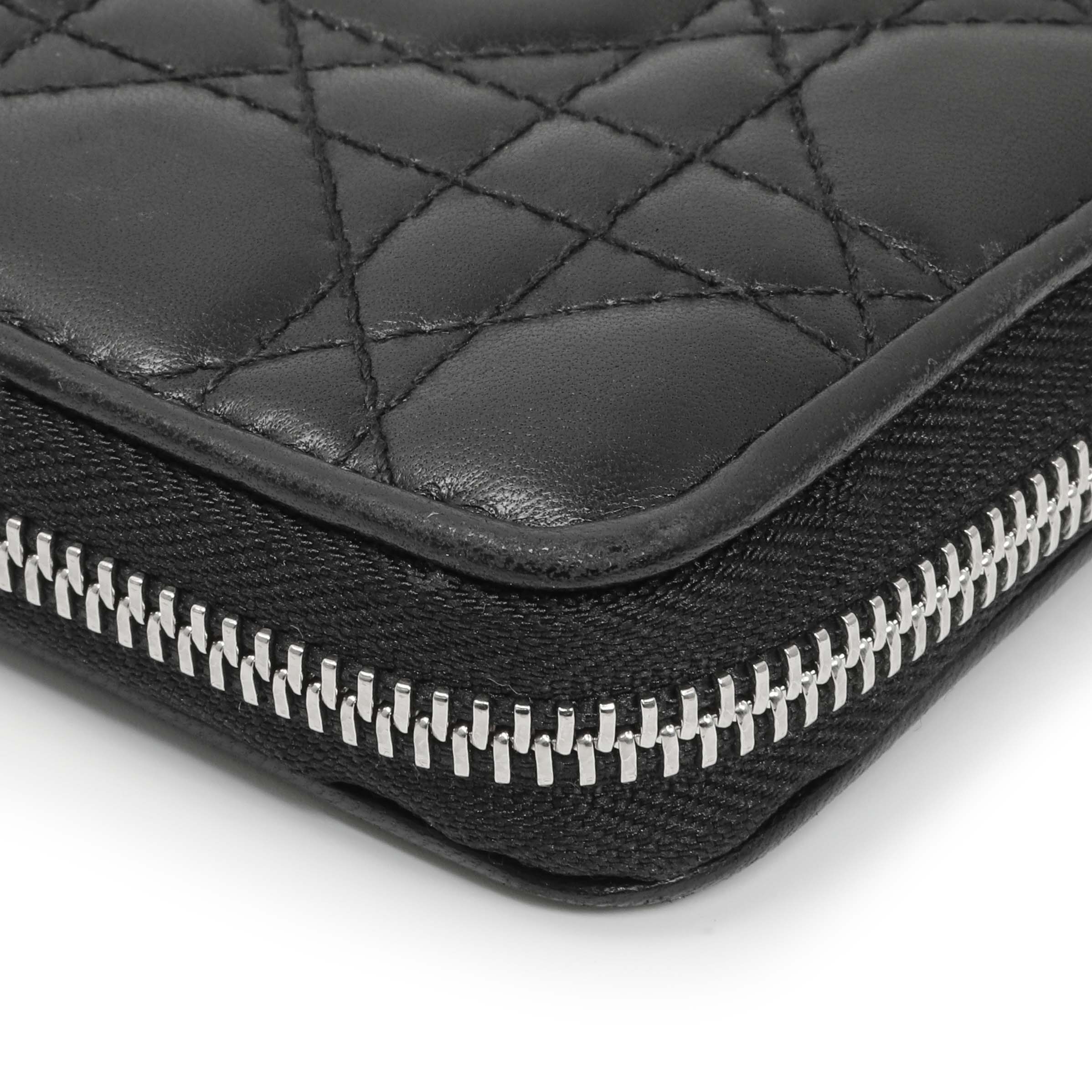 Christian Dior Black Lambskin Cannage Lady Dior Zip Wallet