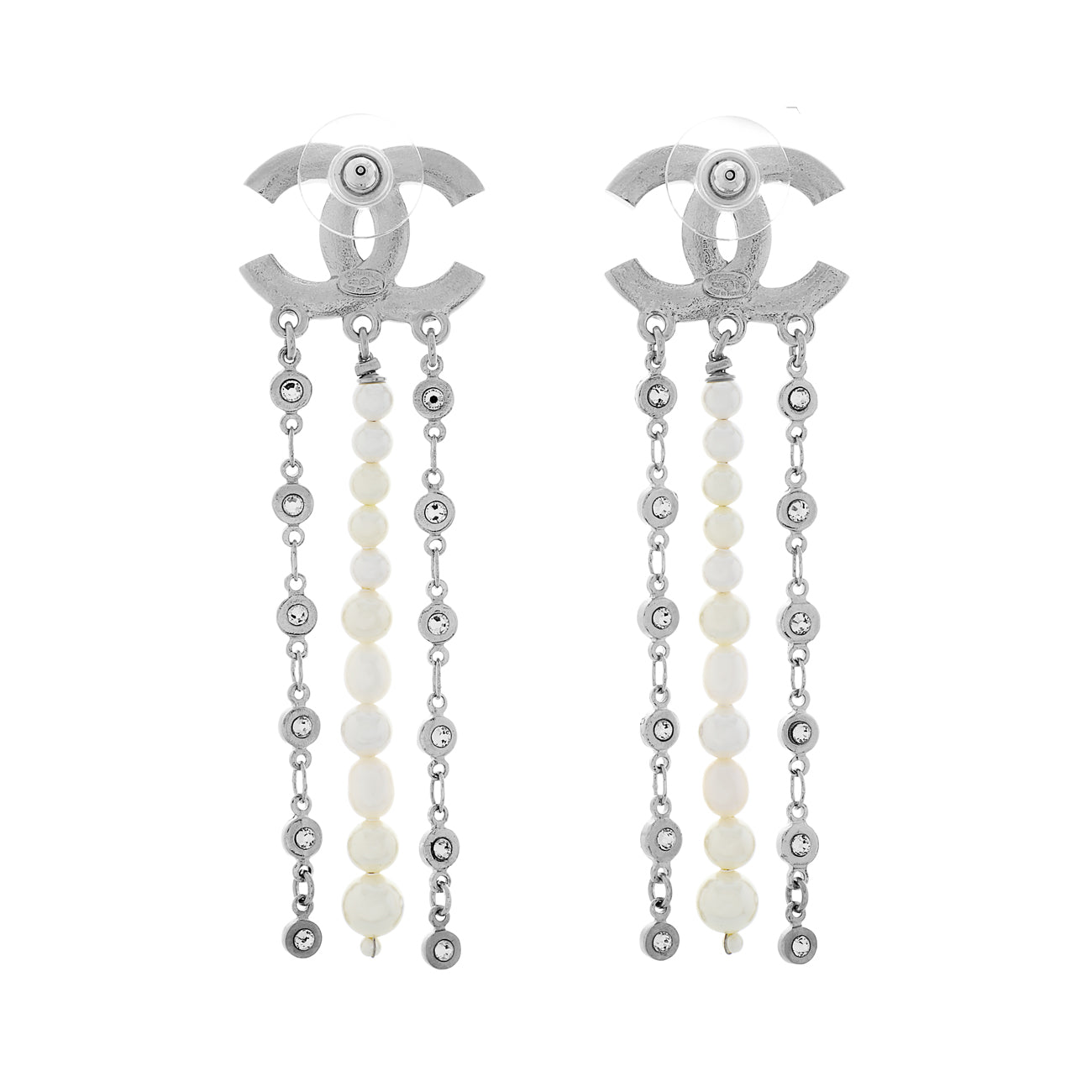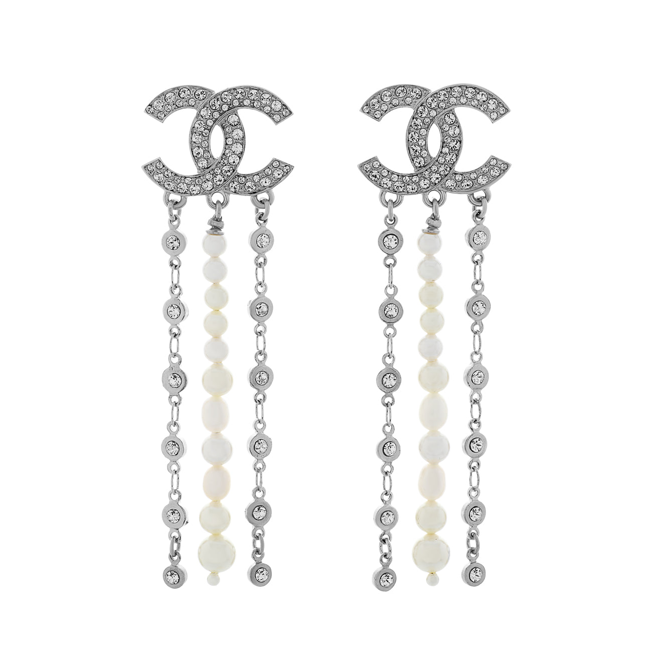 Chanel CC Pearl Crystal Drop Earrings