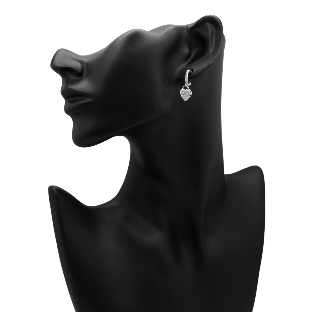 Tiffany & Co. Sterling Silver Diamond Mini Return to Tiffany Heart Hoop Earrings