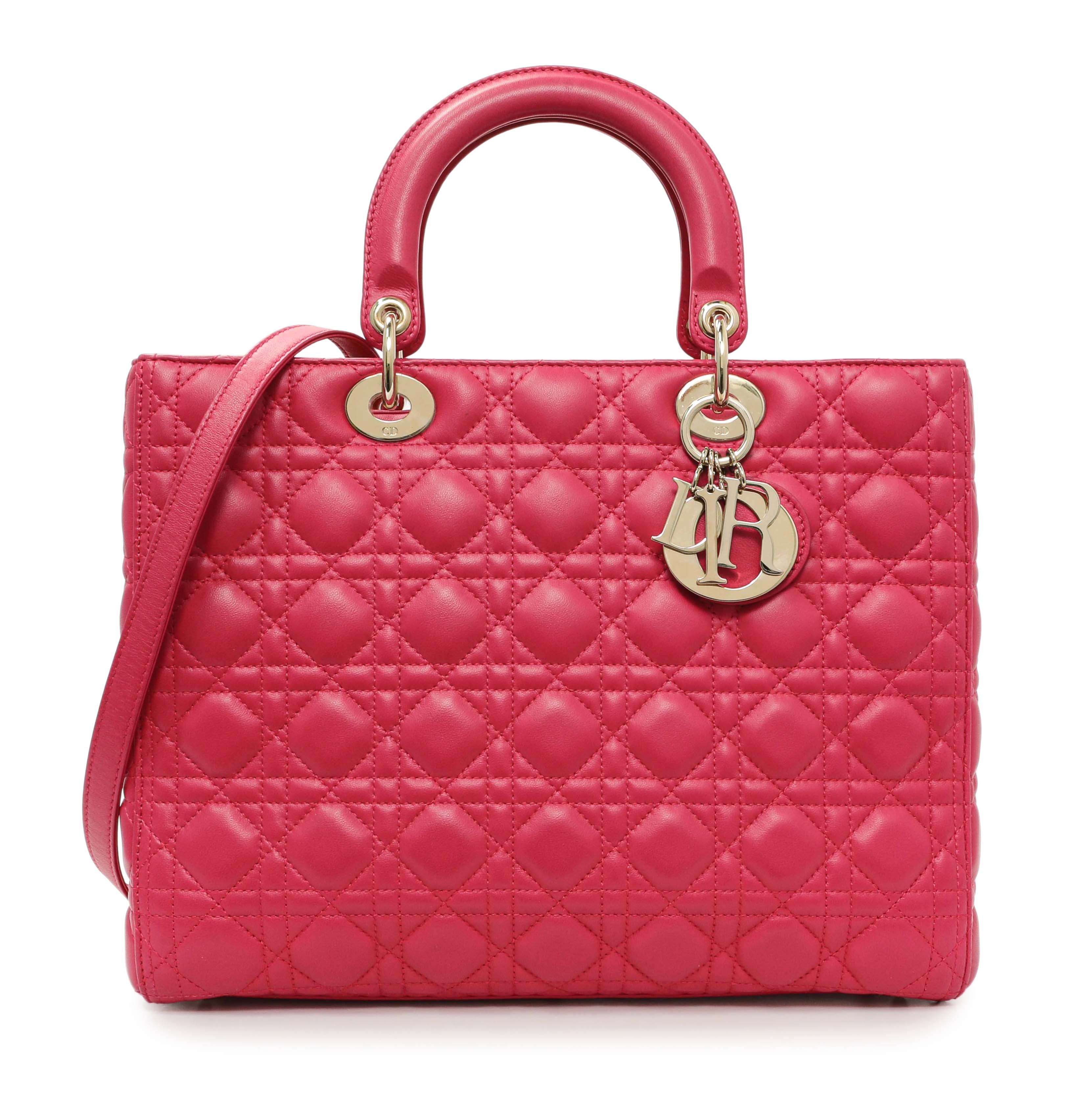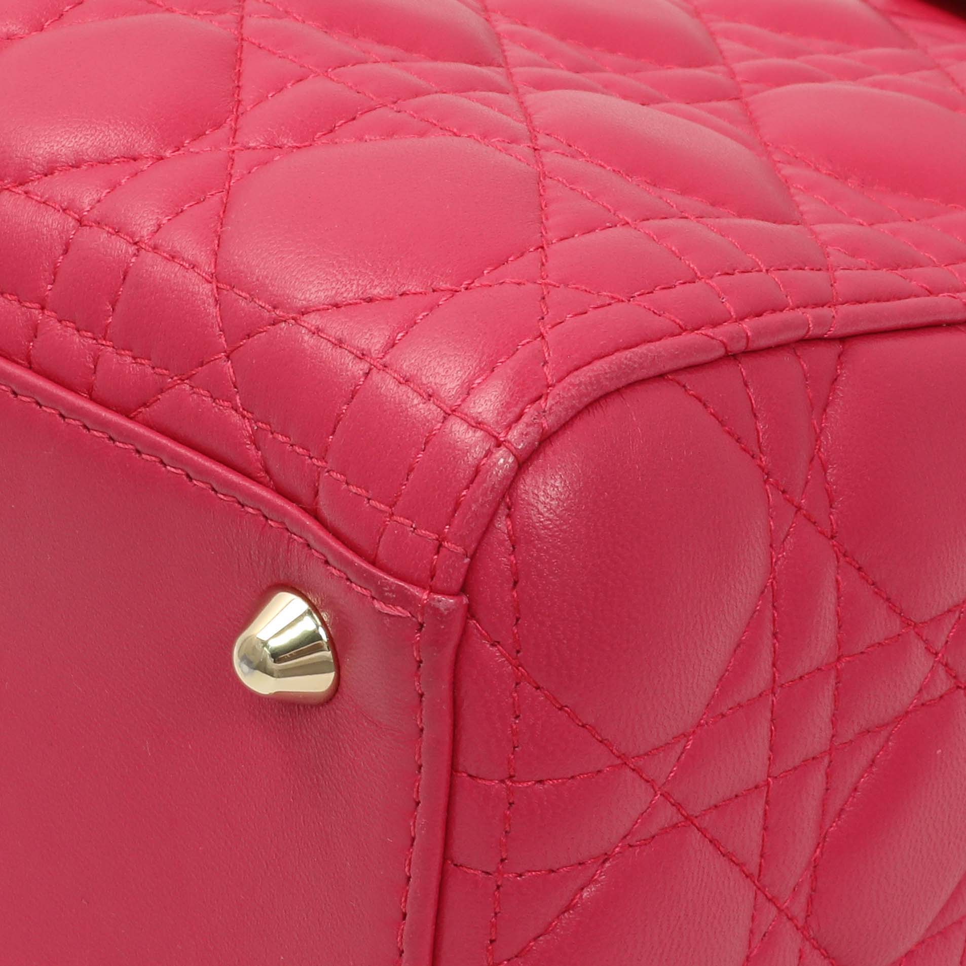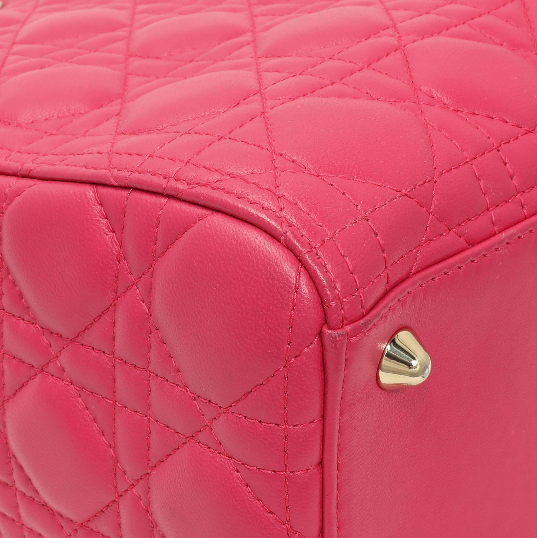 Christian Dior Fuchsia Lambskin Cannage Large Lady Dior