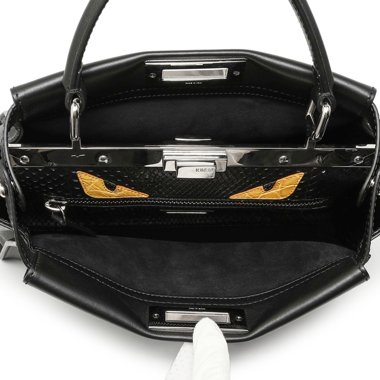 Fendi Black Vitello Seta Snakeskin Crocodile Monster Eyes Medium Peekaboo Iconic Satchel