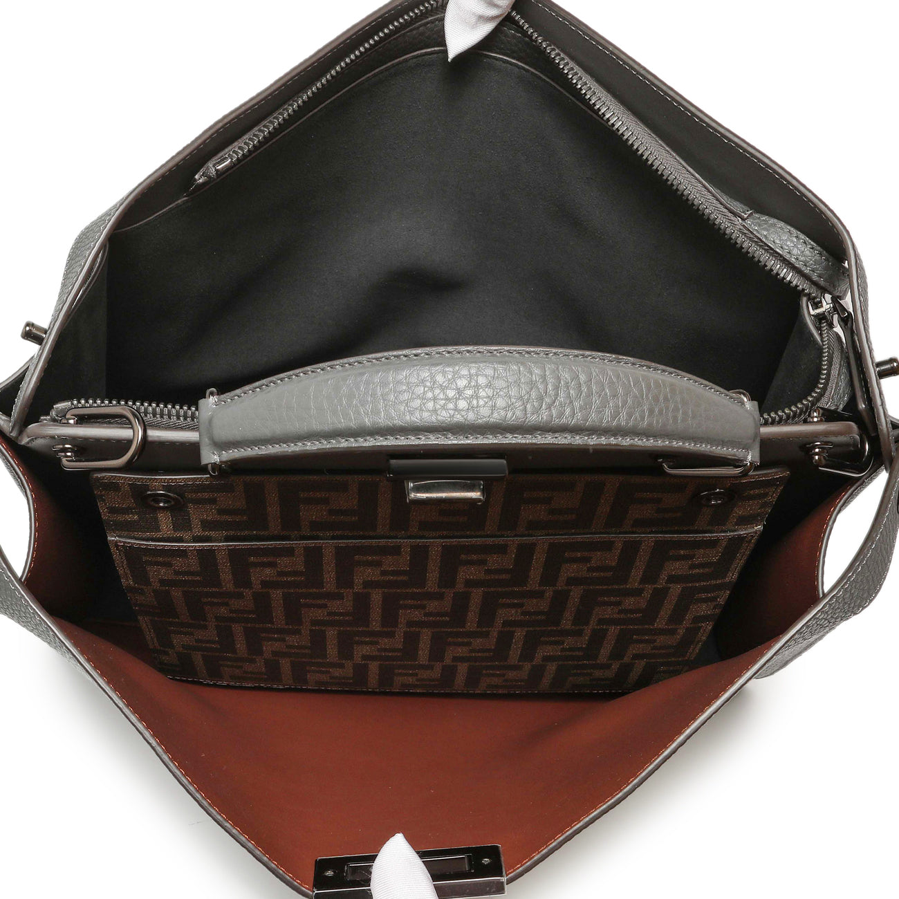 Fendi Grey Cuoio Romano Vitello Cover Monochrome Medium Peekaboo ISeeU Satchel