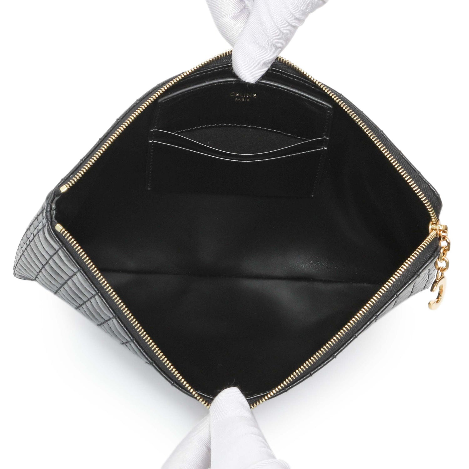 Celine Black Calfskin Quilted C Charm Pouch Accessories Celine