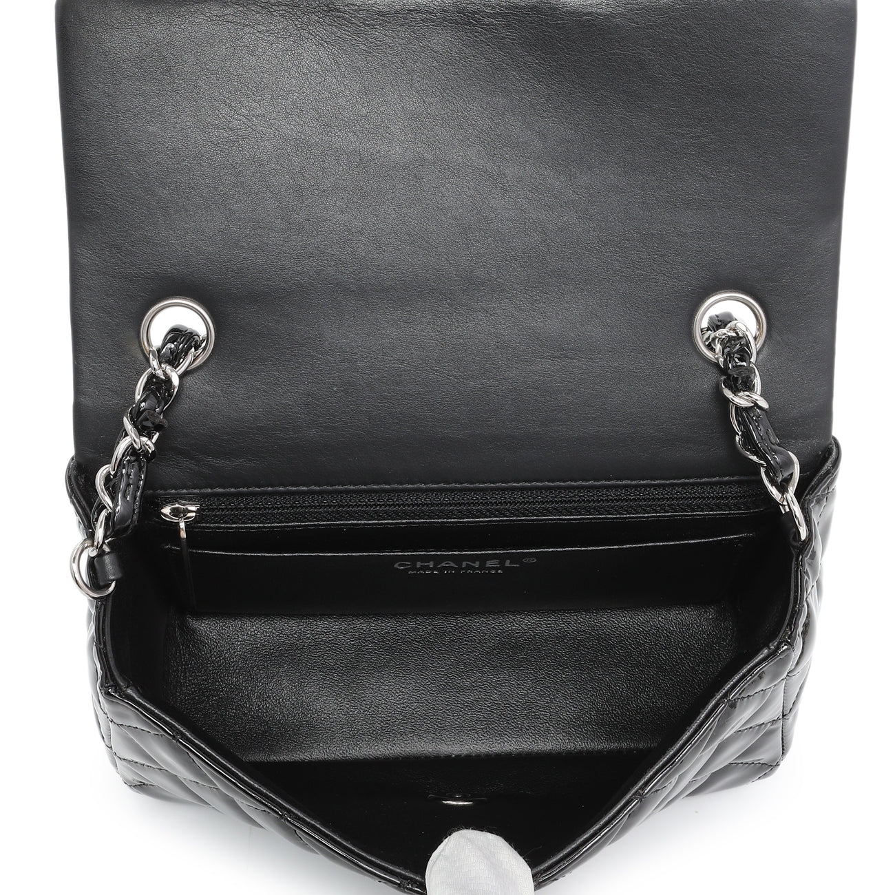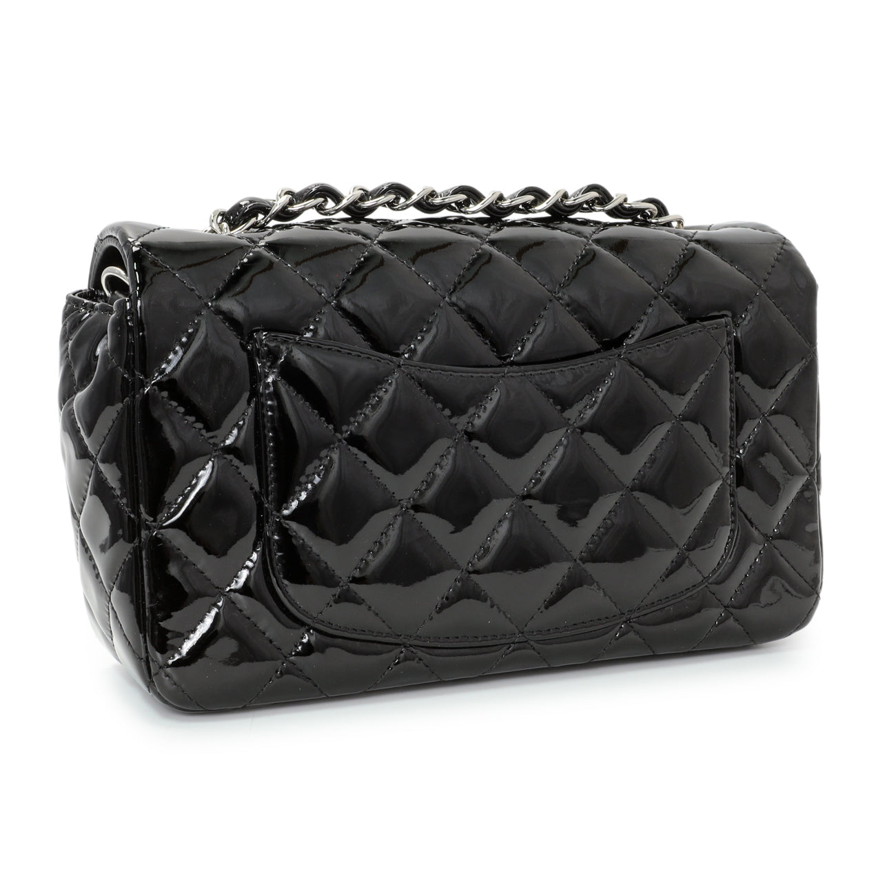 Chanel Black Quilted Patent Mini Rectangular Flap
